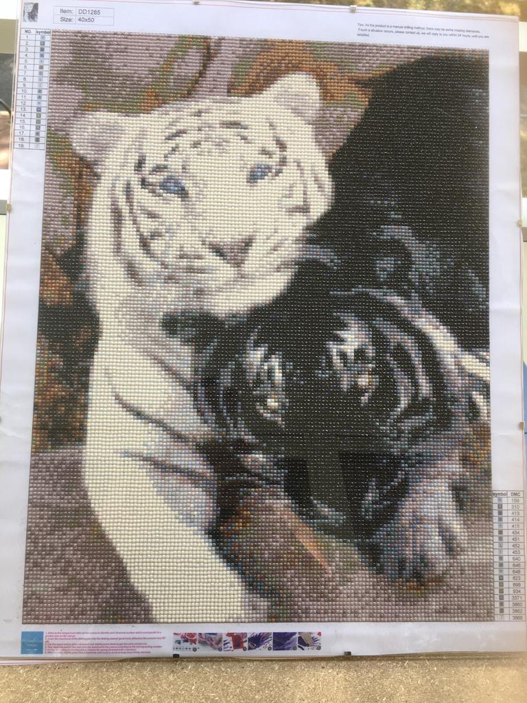Black and White Tiger 5D DIY Diamond Malířské sady Zvířata Full Drill Cross Stitch Řemesla Stitch Domácí dekorace Dárek
