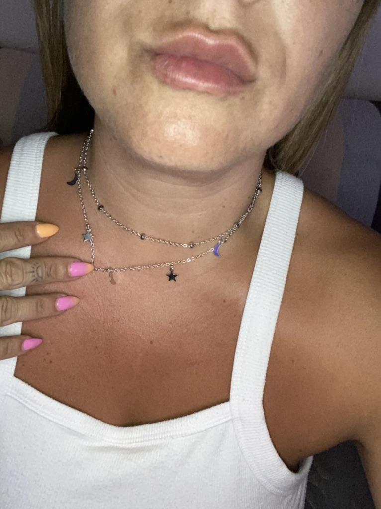 Produkt dorazil krásný a lesklý. Moc se mi líbil. O několik dní později jsem ho vzala na večeři. Spala jsem s řetízkem, ráno byl řetízek matný, jako plech, a můj krk byl zelený. Velmi špatná kvalita. Jednorázový produkt. Dá se použít jen jednou