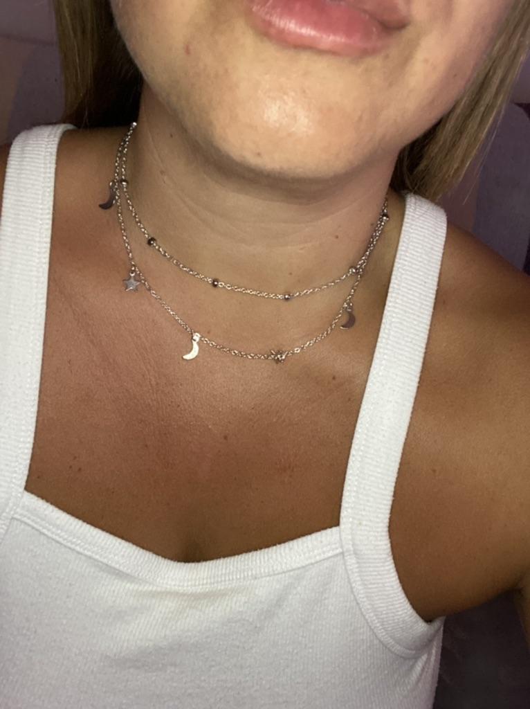 1ks Jednoduché dvouvrstvé přívěsky Moon Star Náhrdelník Korálkový řetízek klíční kosti Dámské šperky
