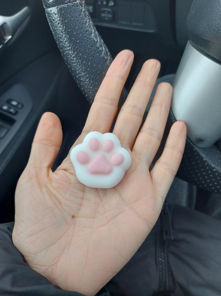 Je pěkně lepkavý, ale stačí ho umýt mýdlem a pak zasypat bílým práškem (mouka, tužidlo, dětský zásyp) a pak už to funguje jako kouzlo a je to přesně jako kotěcí tlapka. Po doteku na rukou zanechává jakousi mastnou texturu, ale můžete ji jednoduše omýt, takže bych jí za to dal 3,5 hvězdičky