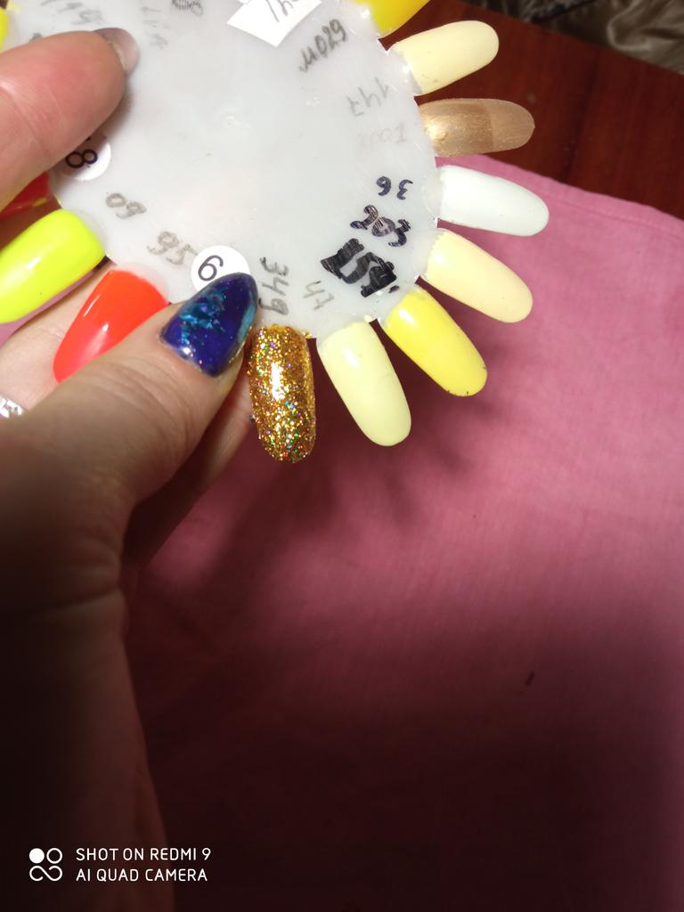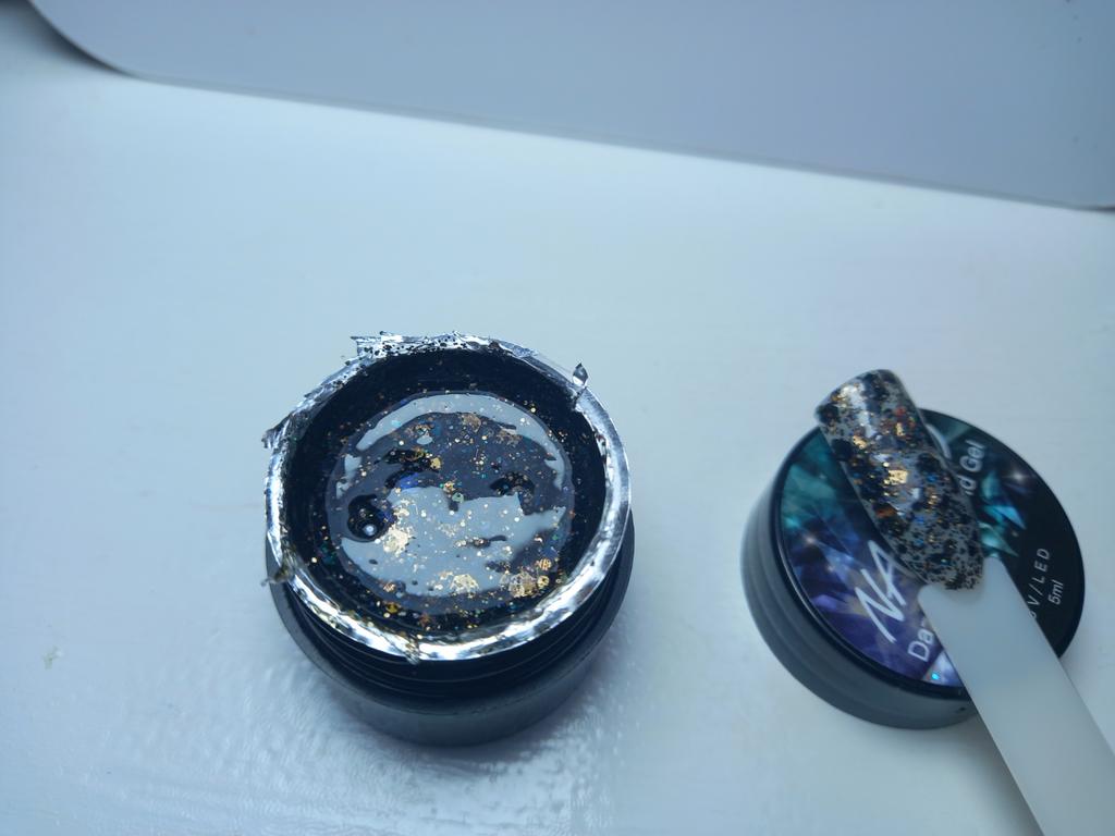S výrobkem jsem spokojen. Děkuji! Gel je docela hustý, třpytky jsou nádherné, zářivé, různých velikostí, třpytí se v různých barvách. Fotografie nevyjadřuje skutečný efekt. Nanášela jsem ho jak na pozadí, tak i samostatně ve 2-3 vrstvách.