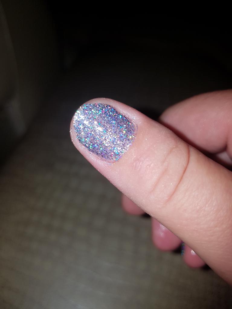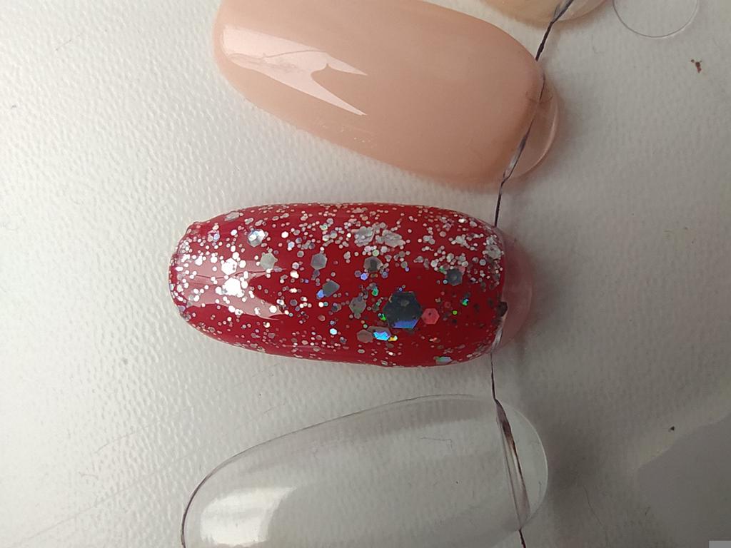 Krásná barva, pěkné krytí na nehtu pouze 1 vrstva jen vidět, velmi třpytivé