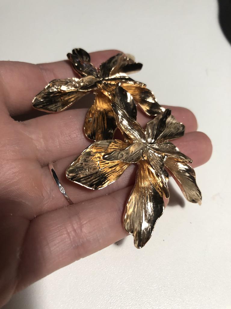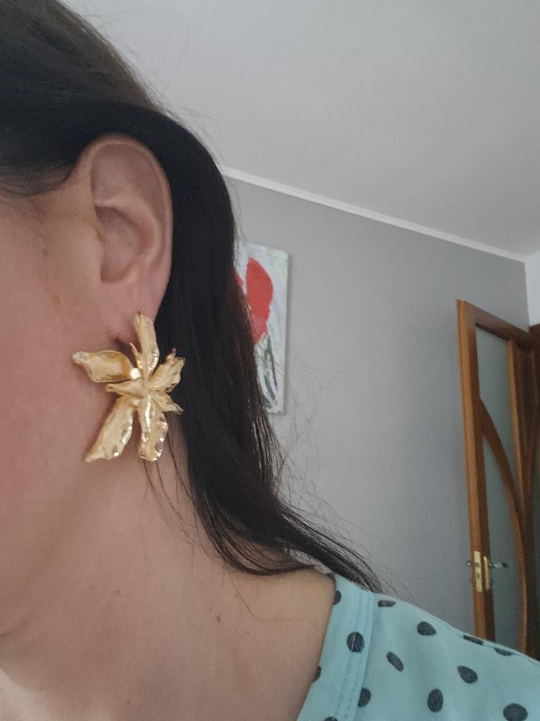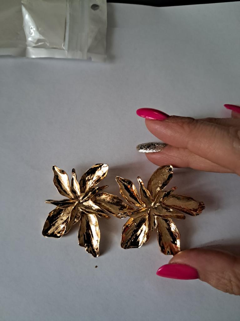 ~ Zlaté květinové náušnice ~ Objednávka dorazila za necelé 2 týdny nepoškozená a dobře zabalená. Náušnice vypadají přesně jako na obrázcích prodejce a jsou vyrobeny z kovového materiálu zlaté barvy. Součástí dodávky jsou i uzávěry. Materiál špuntů byl čistě zpracován a jeví se jako velmi kvalitní. Je však také velmi těžký, což znamená, že náušnice pravděpodobně nemůžete nosit celý den. Design je velmi poutavý, elegantní a jedinečný, a proto můžete špunty nosit i při exkluzivnějších příležitostech. Prodejce je nabízel i v jiných barvách. S nákupem jsem velmi spokojená a jsem velmi spokojená s těmito krásnými náušnicemi. Mohu je i prodejce jen doporučit.