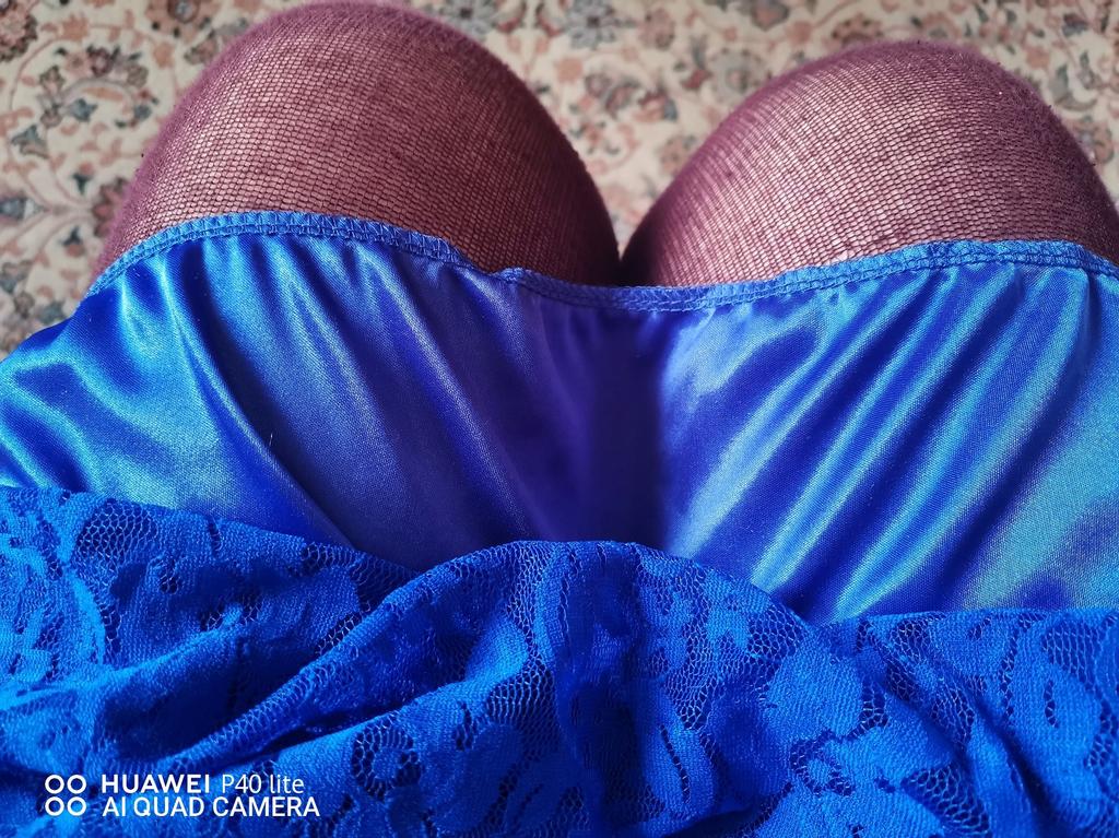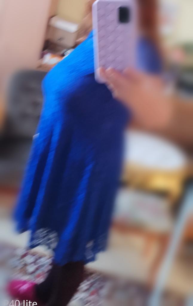 Roztomilé šaty z měkké, barevné, modré látky. Bohužel, protože Talia je moc vysoká., skoro špatně šitá na prsou a spodničku.. Vypadá jako garmonička. 🤔😮 Objednala jsem si 5XL.. Takhle se to nosit nedá. Jak jsi vystřihl sukni pod "rovnou"?! 😂