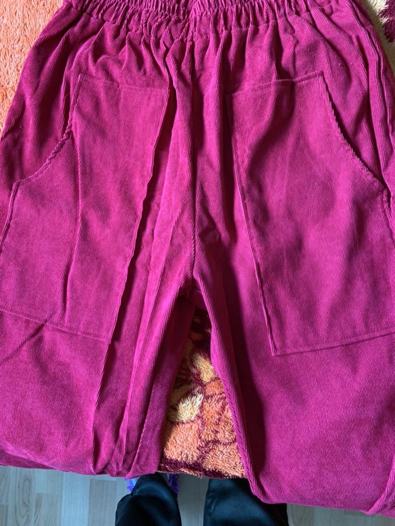Velmi dobré kalhoty. Látka je tenčí než na fotce. Připadá mi jako bavlna, i když na etiketě je napsáno 100% polyester. Jediný bod, který lze považovat za mínus, je, že guma v pase je velmi těsná, i když měkká. Ale to není problém. Gumičku lze vyměnit))))