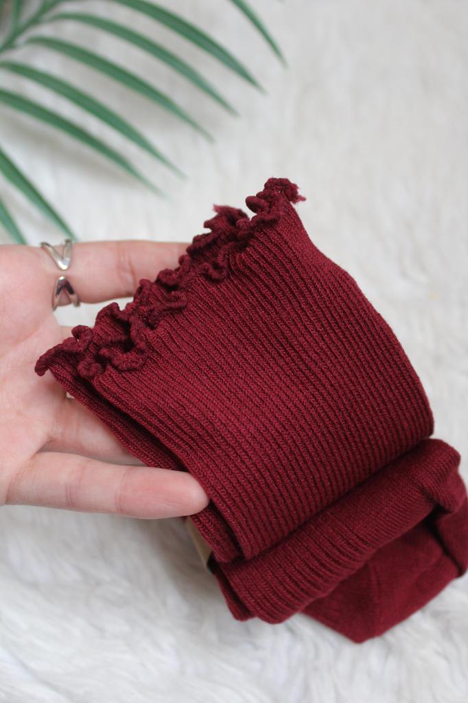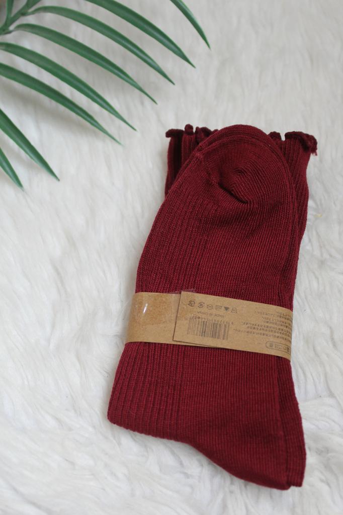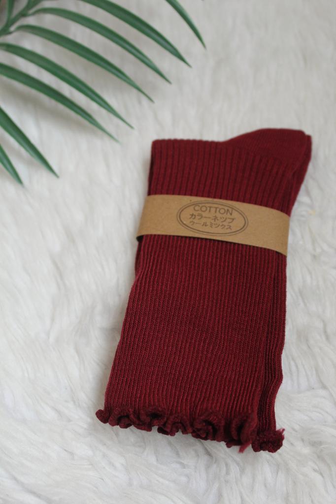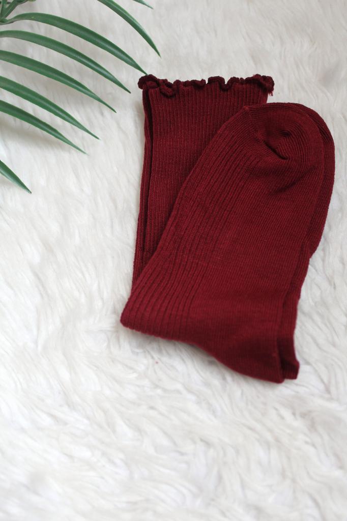 Ponožky 🥀 Kvalitní bavlněné ponožky 🍃 Dlouhý model pro chladné období.. Krásný a trendy vínový odstín 🥀 Vlnitý okraj zakončený overlockem působí jako melír. Samotné ponožky jsou žebrované a pohodlně sedí.. Kvalita potěšila, je jako bavlna, zároveň procento elastanu ve složení dobře sedí a je odolné proti opotřebení 🍃 Existují různé barvy. Rozhodně doporučuji)