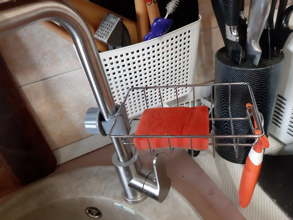 Kuchyňská dřezová baterie Polička Nerezový držák houbičky Nastavitelná dřezová baterie Hadřík na utěrky Stojan na utěrky