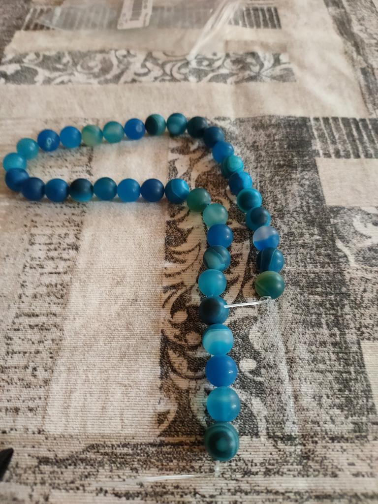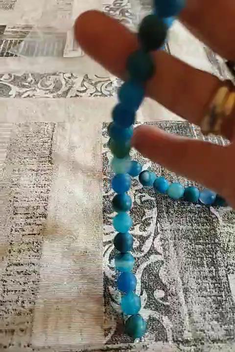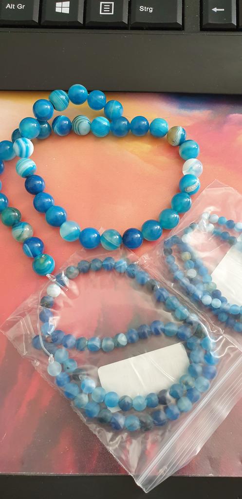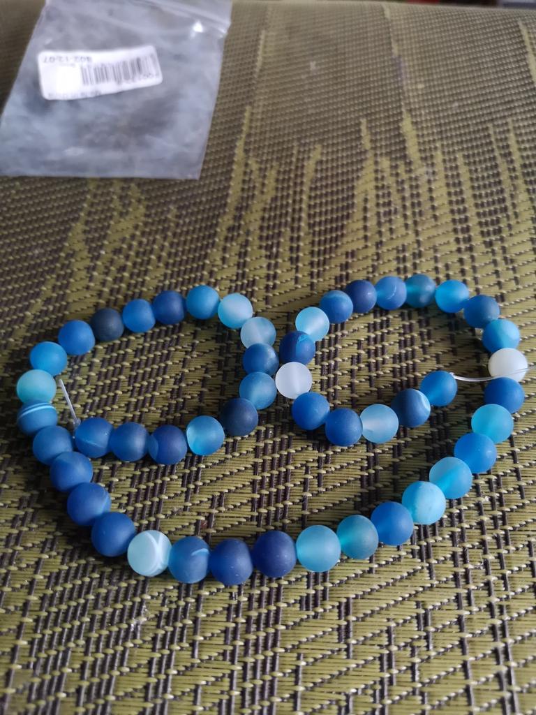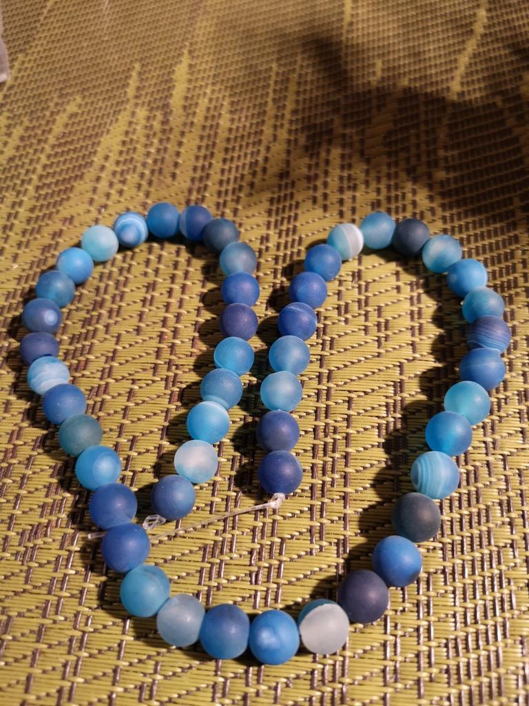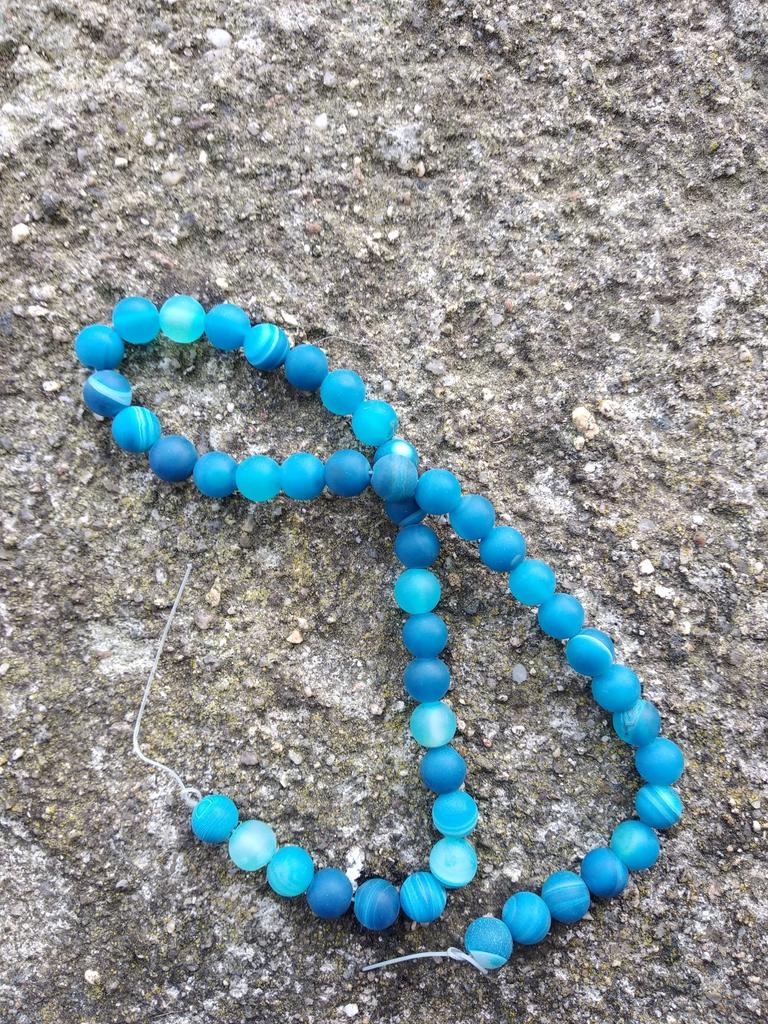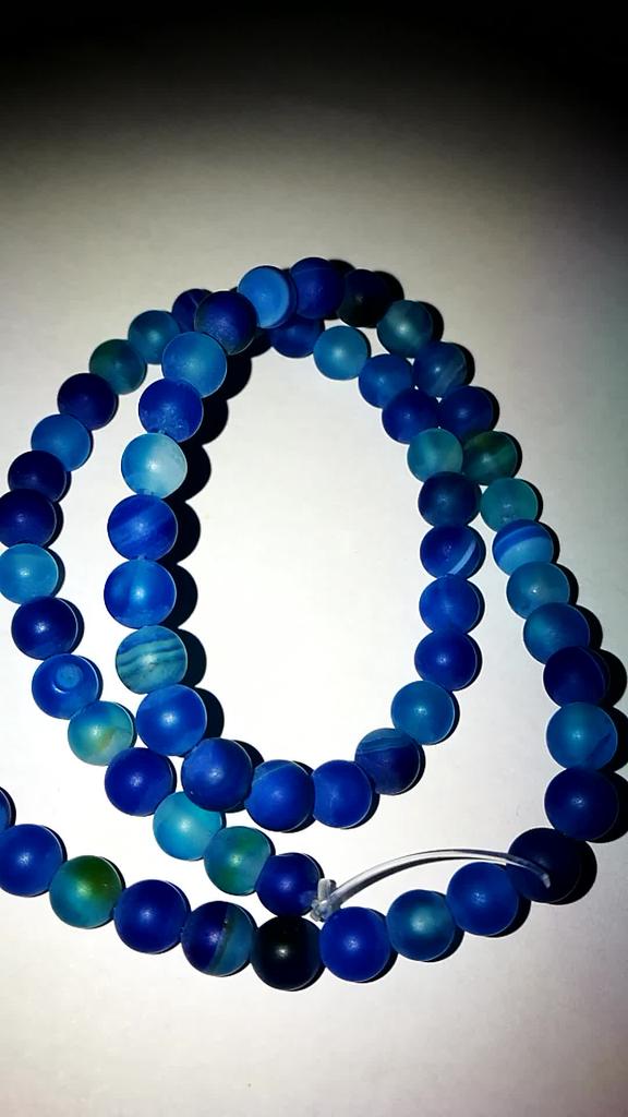 Cca 46 korálků z přírodního kamene modrého achátu 8mm v různých odstínech modré. Perly vypadají krásně. 🥰🦋