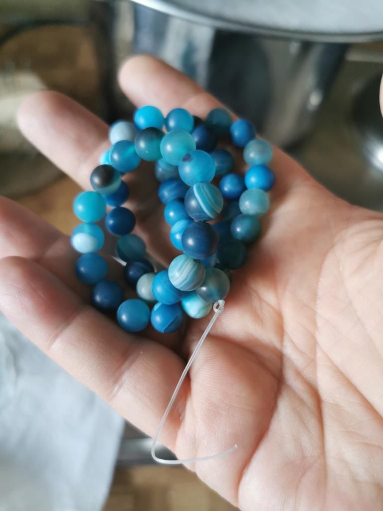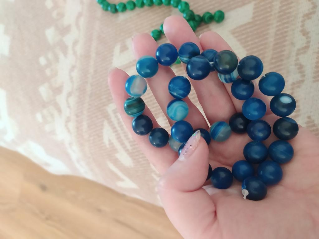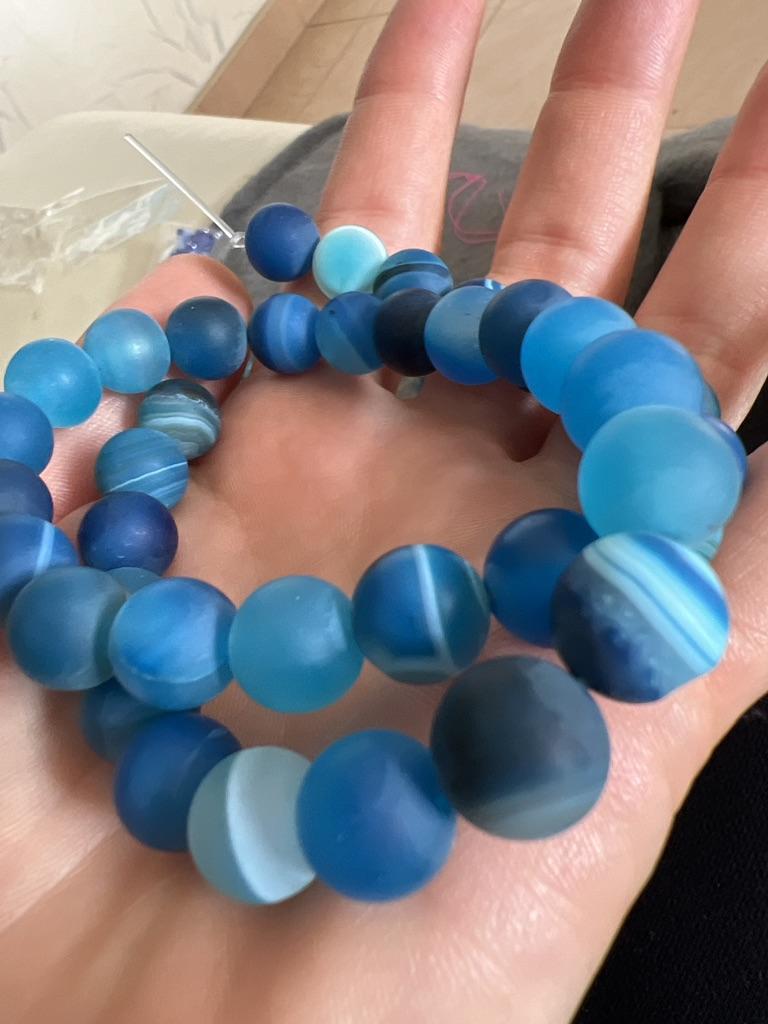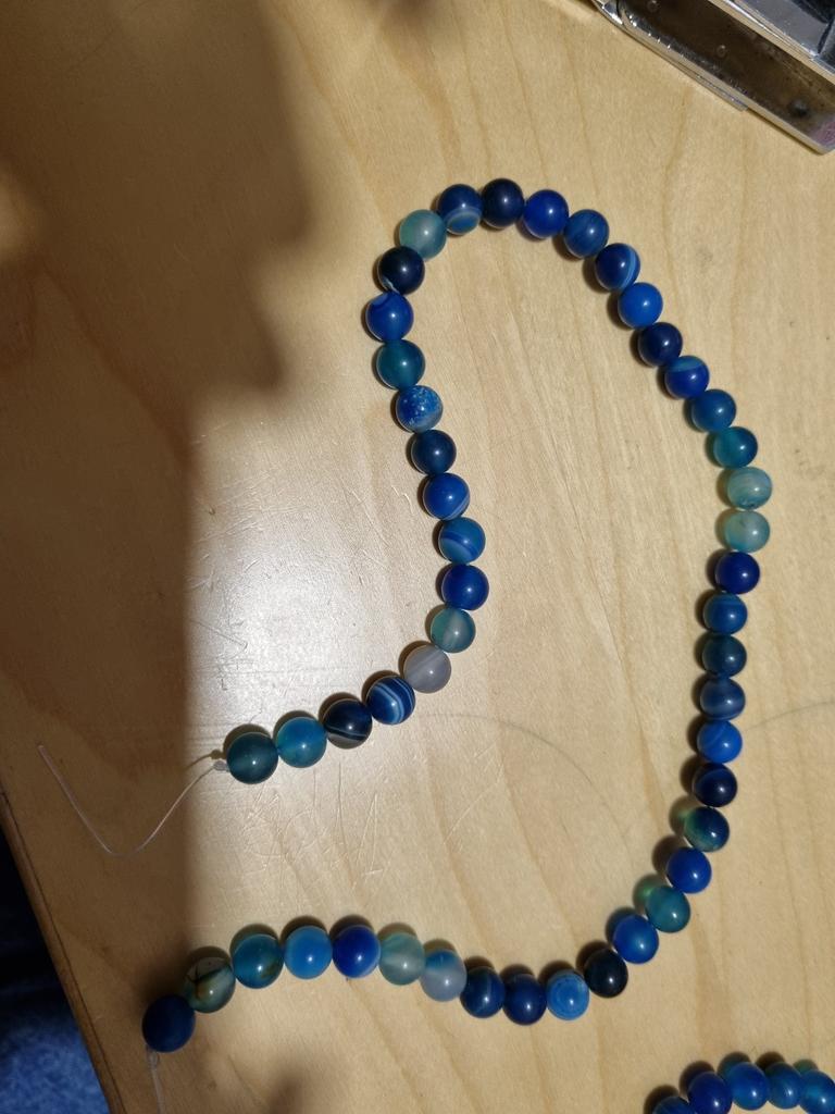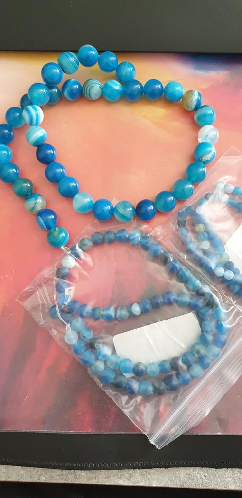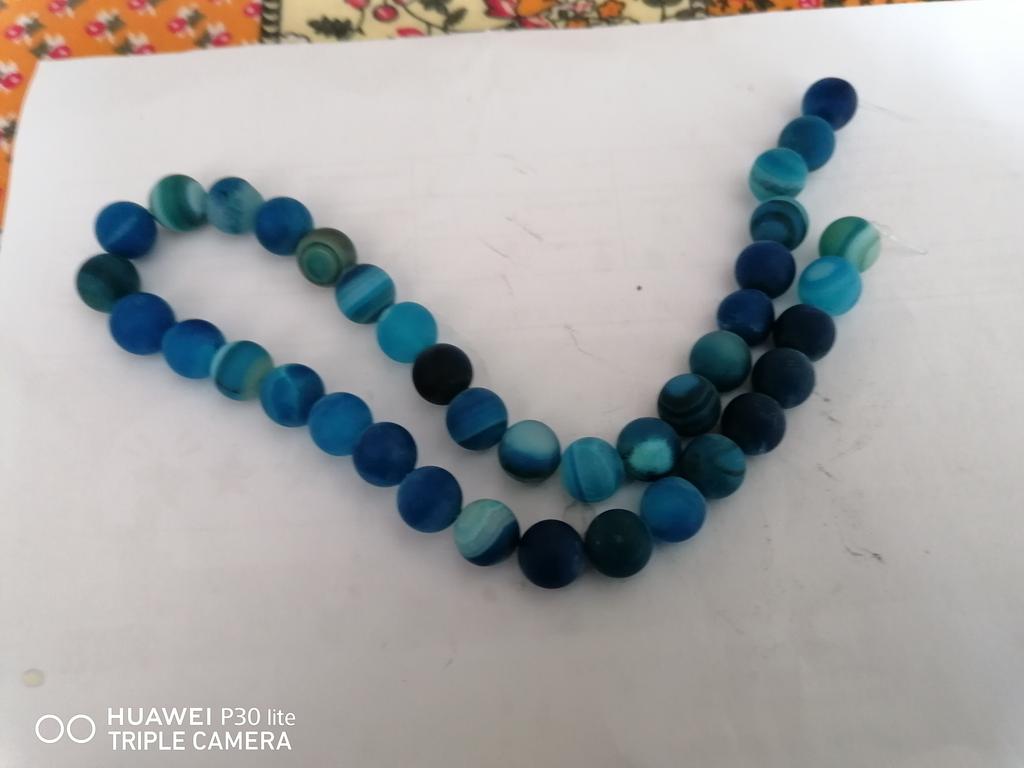 Cca 46 korálků z přírodního kamene modrého achátu 8mm v různých odstínech modré. Perly vypadají krásně. 🥰🦋