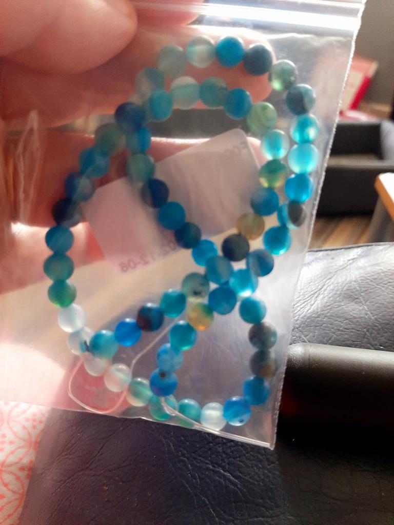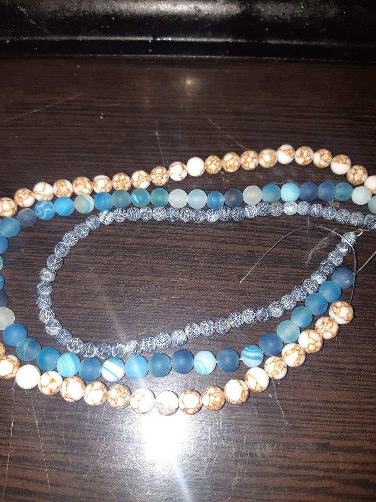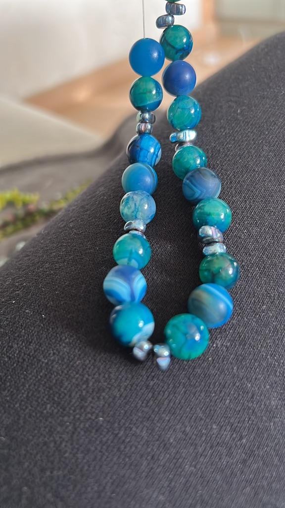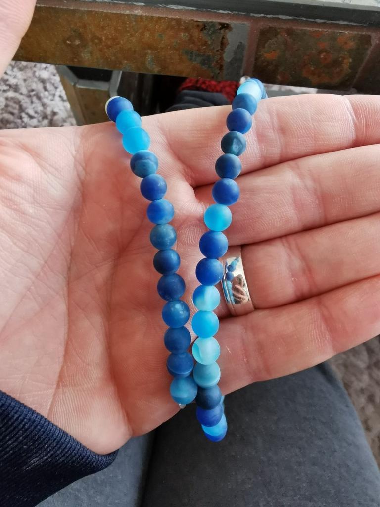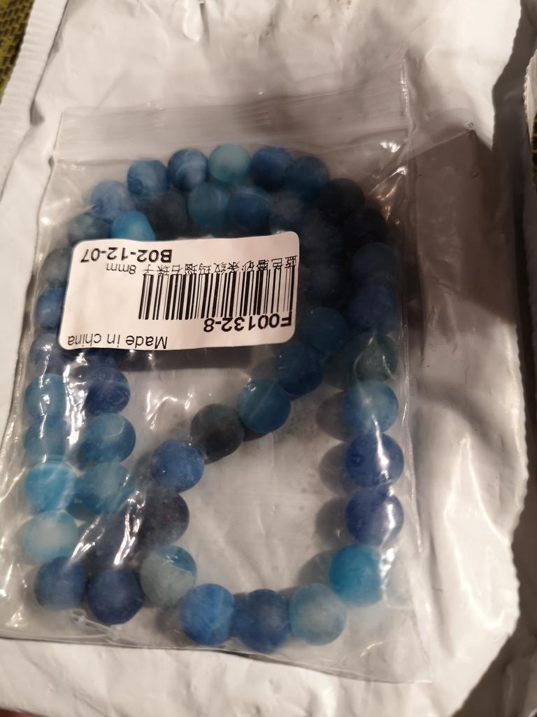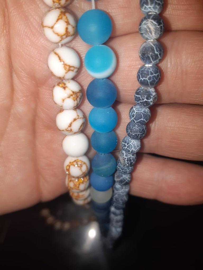 Cca 46 korálků z přírodního kamene modrého achátu 8mm v různých odstínech modré. Perly vypadají krásně. 🥰🦋