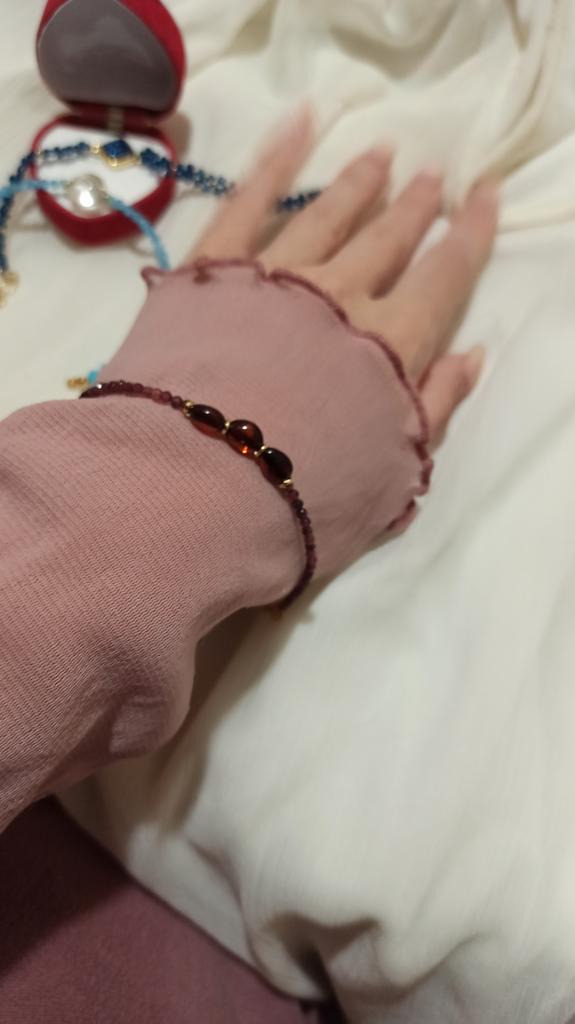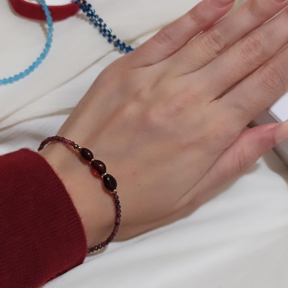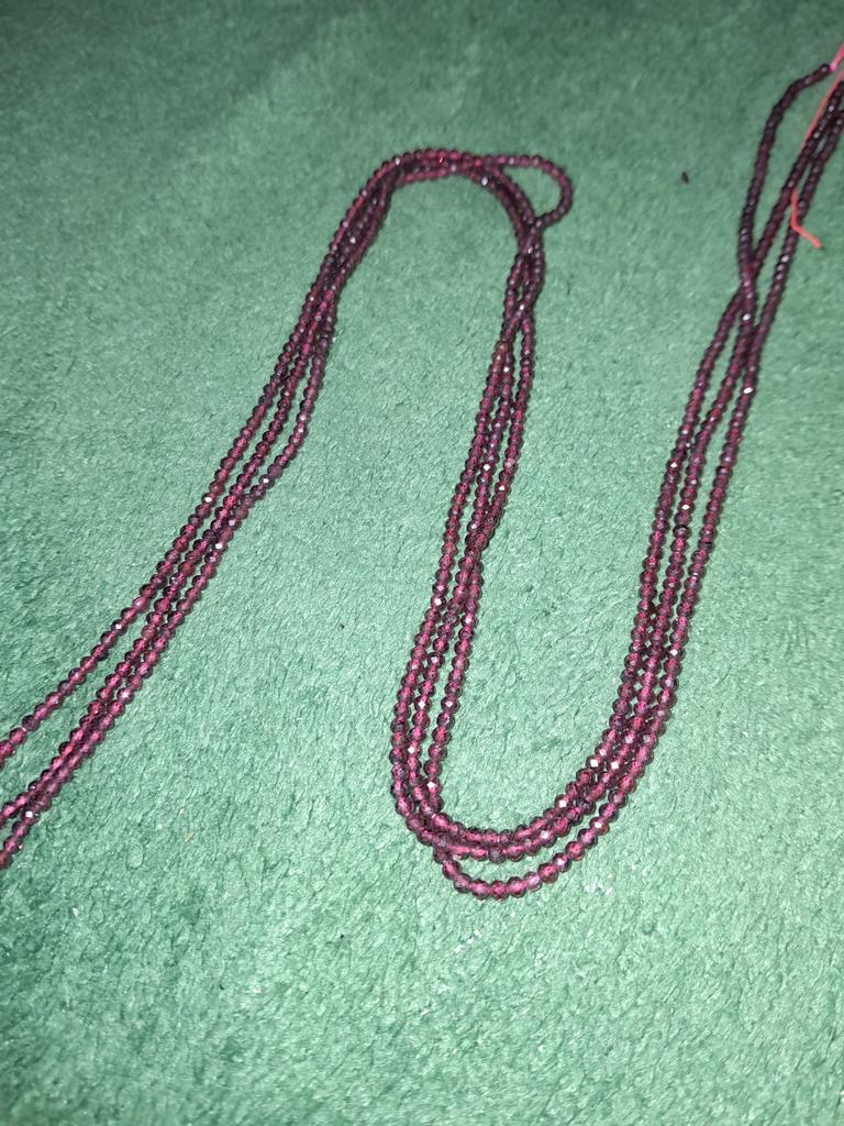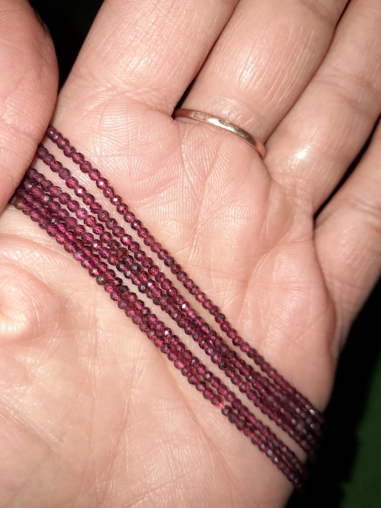 Granátové jablko. Korálky mají uvedenou velikost. Jedno vlákno