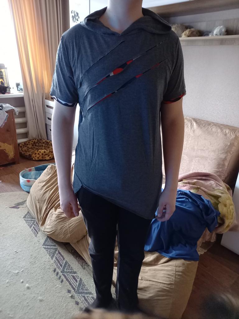 Pánská letní ležérní halenka s krátkým rukávem a kapucí patchwork
