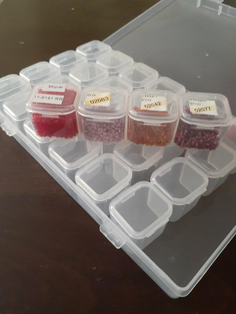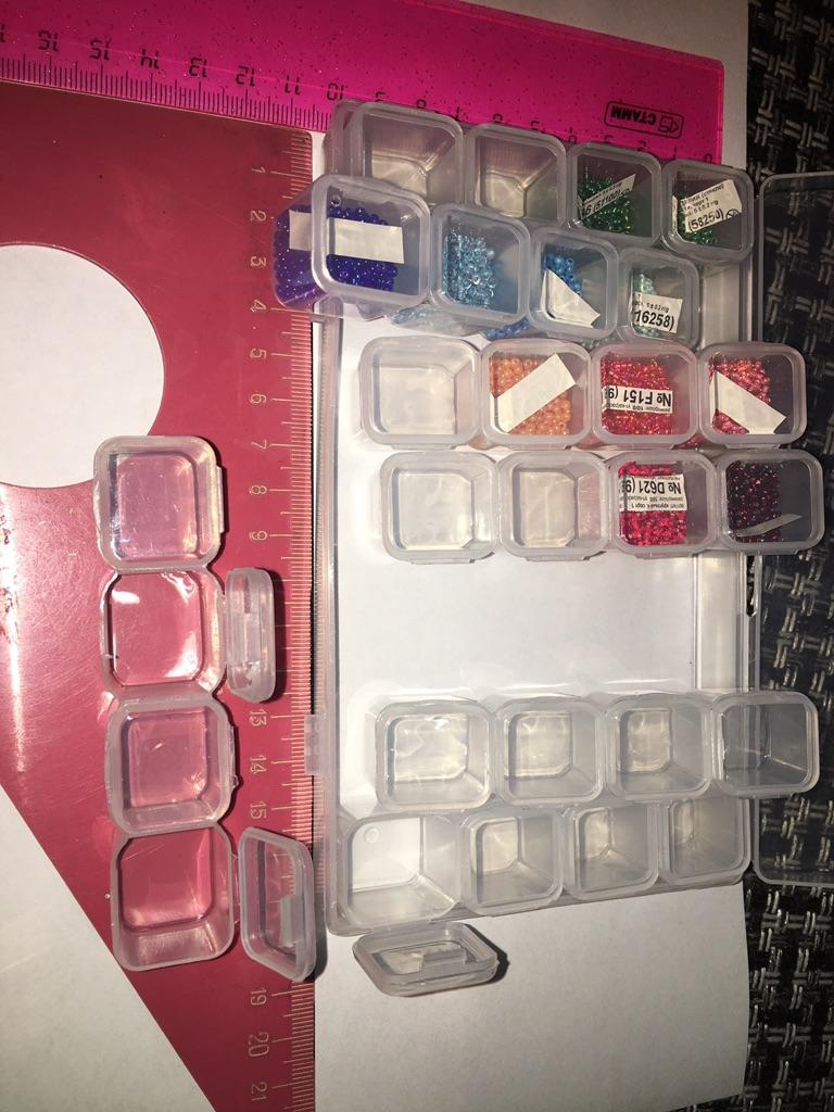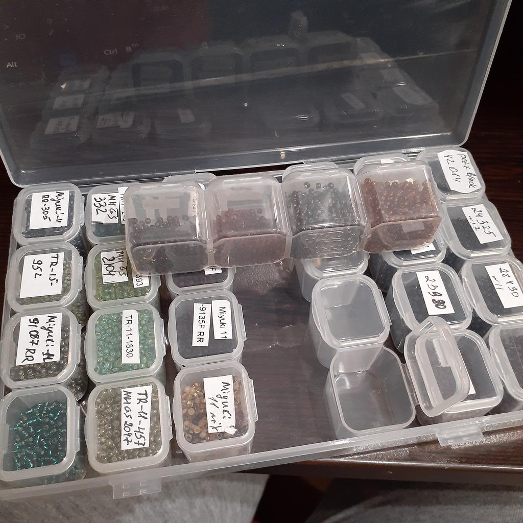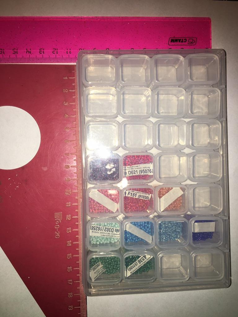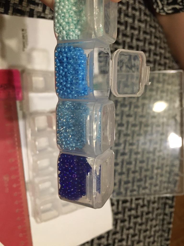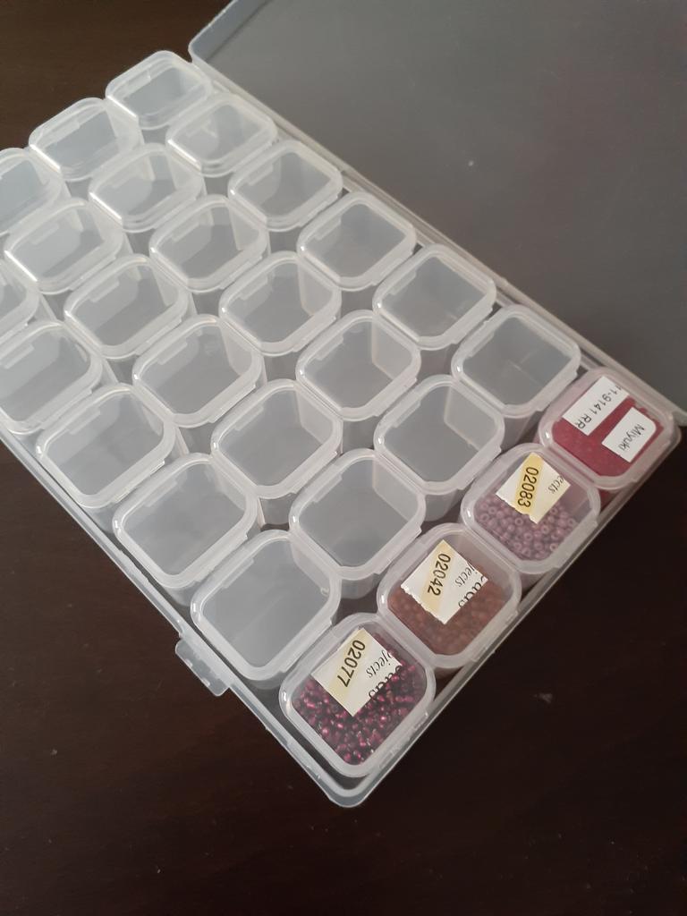 Už beru druhý takový organizér. Je vhodné, aby se uvnitř buněk vyjímaly 4 najednou. Pojme 10 g kuliček velikosti 11. Mezi nedostatky - v předchozím se jedna buňka přestala po dni zavírat. Tohle se zdá být úplně normální. Pohodlně se skladuje, ale organizér pád nevydrží - vše se otevře a rozpadne. Mějte na paměti