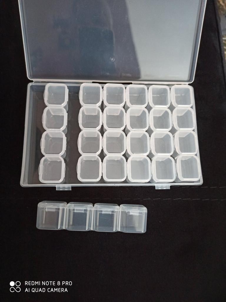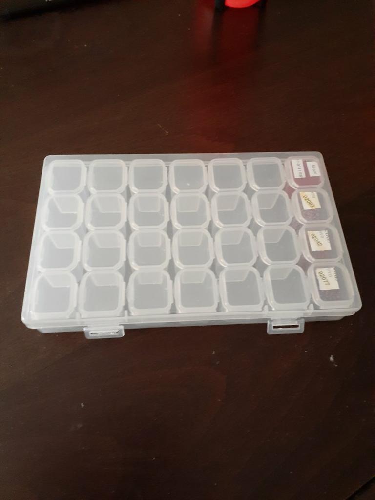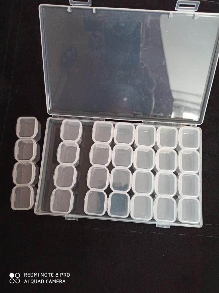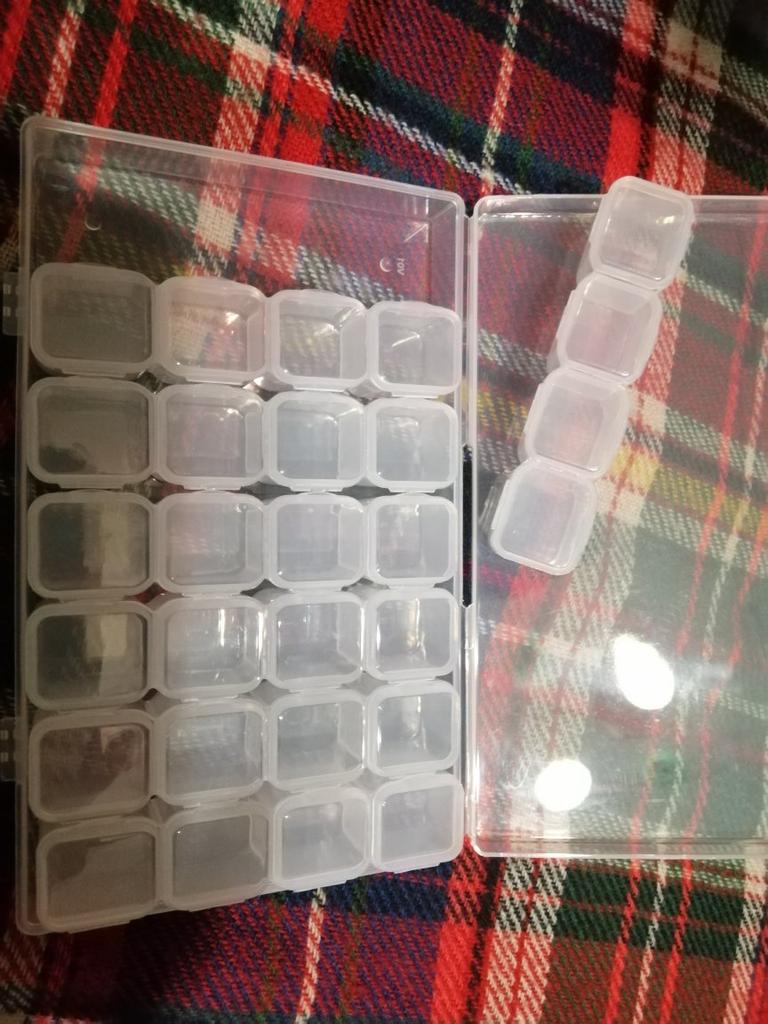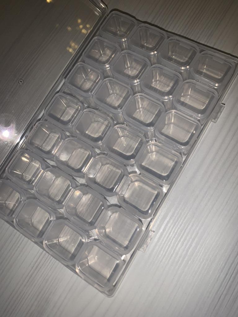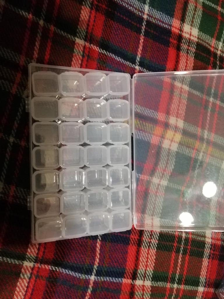 Tato krabice dorazila poměrně rychle 😊 Trvalo to 2-3 týdny 👍 Krabice je: 🌸 Snadné otevírání 🌸 Má 28 malých pokojů 🌸 Dá se využít pro uložení spousty věcí 🌸 Pevně drží 🌸 Velmi praktické Moje dcera a já milujeme diamantové obrázky a proto je fantastické mít krabičku, do které je uložit, takže je snazší diamanty používat 🤩 Krabička se dá využít na spoustu dalších věcí 😊👍 Např. knoflíky, špendlíky, hřebíky a mnoho dalších drobností 🤩 Určitě lze doporučit lidem, kteří chtějí mít přehled o maličkostech 👍👏