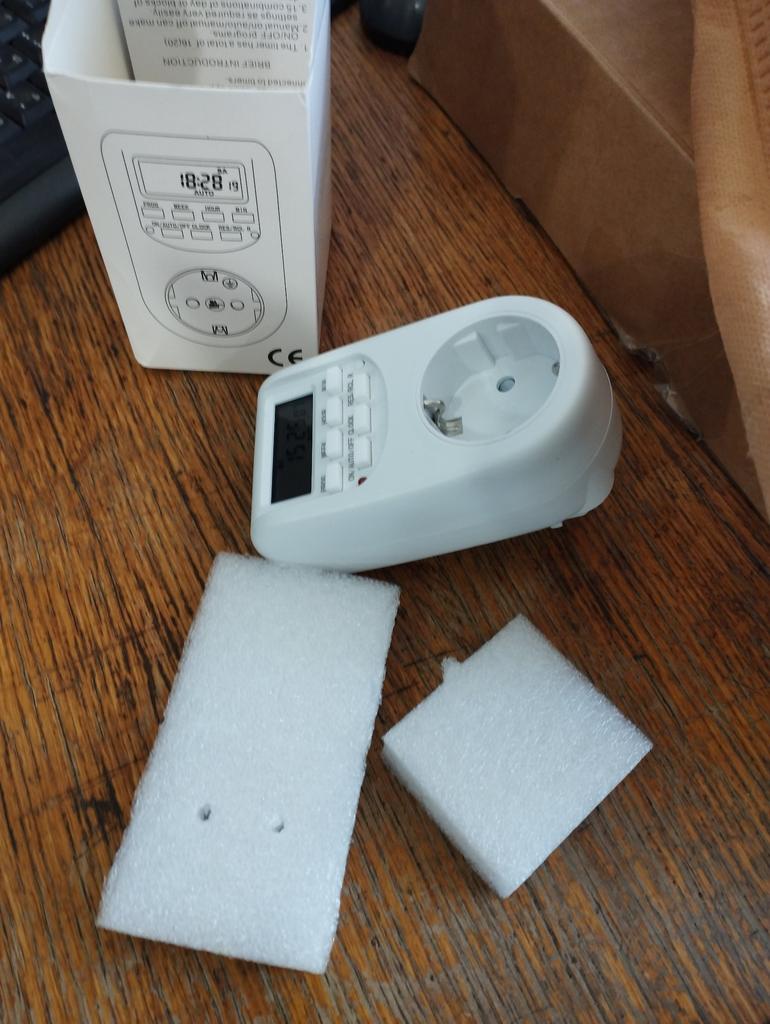 Časovač dorazil neporušený, ale funguje jako normální zásuvka pro hodiny. Režimy zapnutí a vypnutí elektrické zásuvky nefungují.