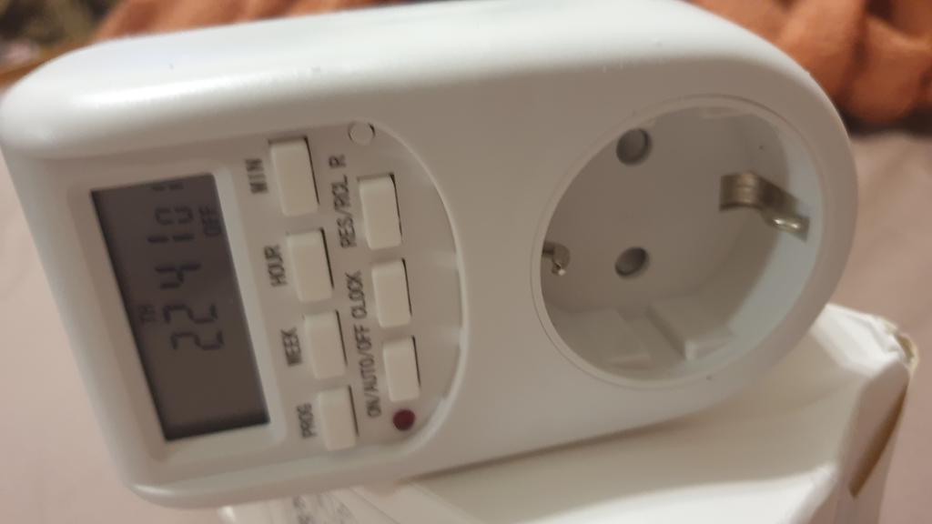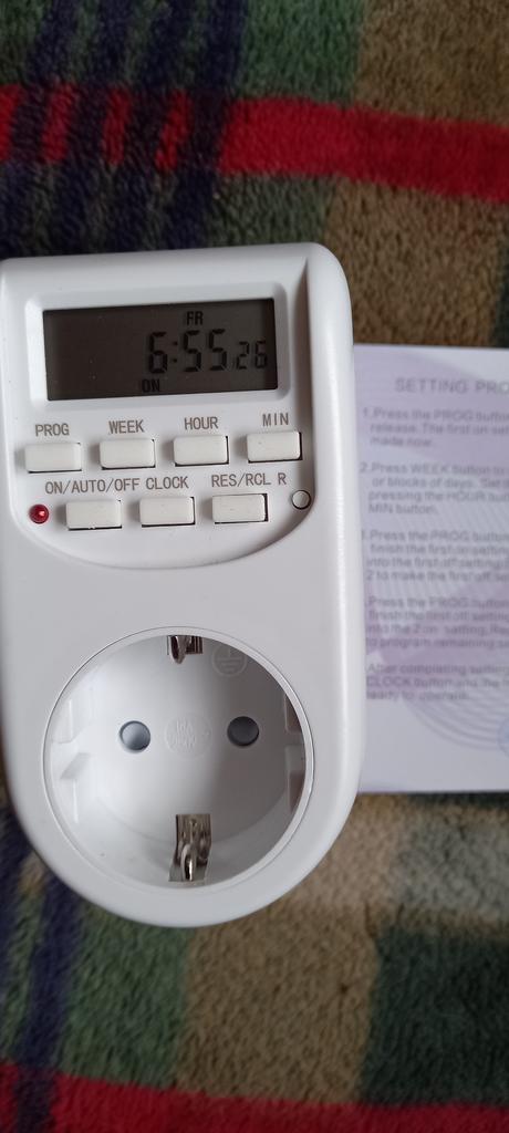 Spotřebiče jsou perfektní Funguje to skvěle. Nejprve jsem nechápal, jak to funguje, ale pochopil jsem to tím, že jsem šel na YouTube. Nejprve nejprve nastavte místní čas stisknutím obou (hodiny/hodiny) pak tlačítko (první program vlevo nahoře). Objeví se z programu 1/16 k vytvoření dle vašeho výběru. V každém programu vytvořím a: Příklad (1on) (1of) V prvním (na) Musíte nastavit čas, kdy chcete, aby stoupal . (z ) Čas, kdy chcete, aby se vypnul. Doufám, že tyto informace pomohou všem. AHOJ