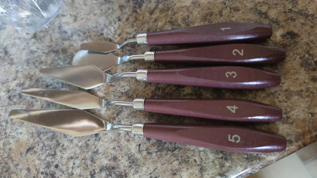 5 ks smíšená sada škrabek na palety z nerezové oceli, špachtle, nože pro malíře, nástroje pro olejomalbu, malba, nůž, čepel