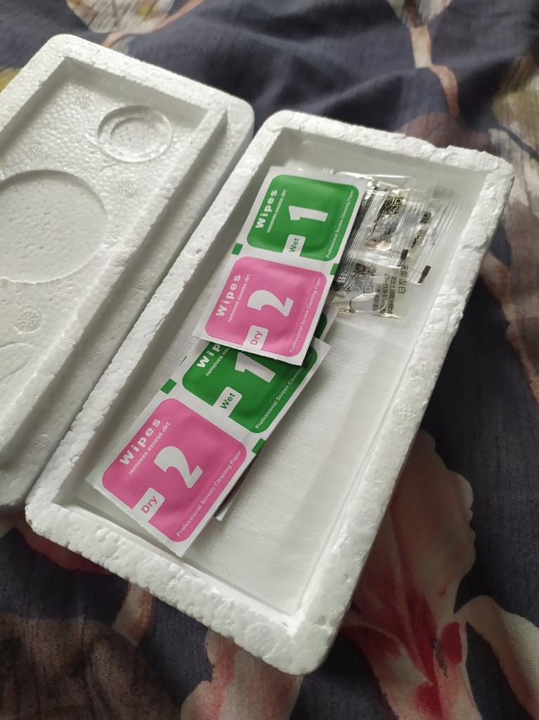 Zboží trvalo cca 22-25 dní. Pěkně zabalené: v pěnové krabičce. Sada obsahuje všechna potřebná zařízení: jako jsou ubrousky. Velkým plusem je, že sklo je průhledné a bezrámové. Perfektně sedí na telefonu, dobře reaguje na dotek, děkuji Jumu! ♥️)