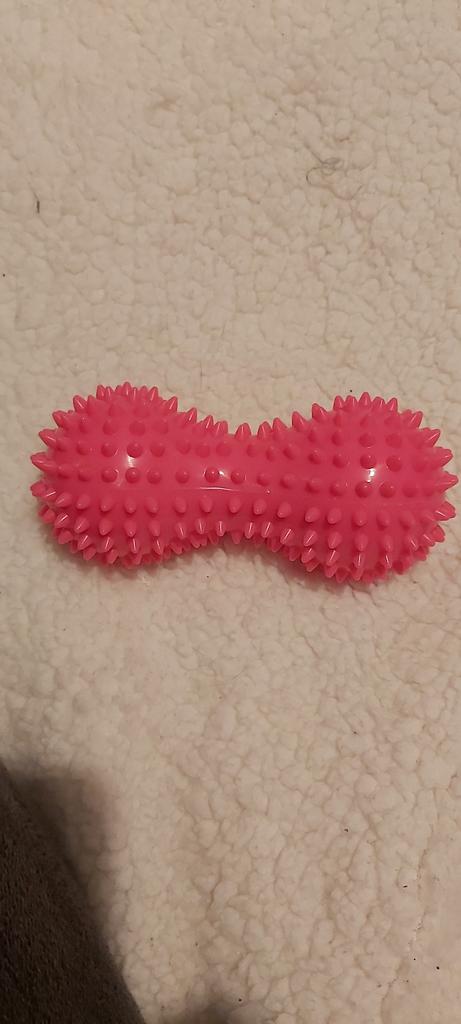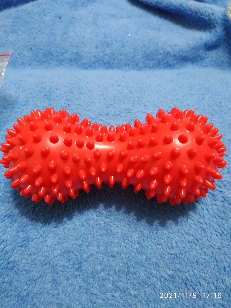 Tvrdý plastový předmět s plastovými hroty. Čekal jsem, že bude měkčí v materiálu. Větší, než jsem čekal