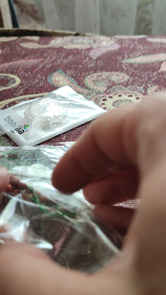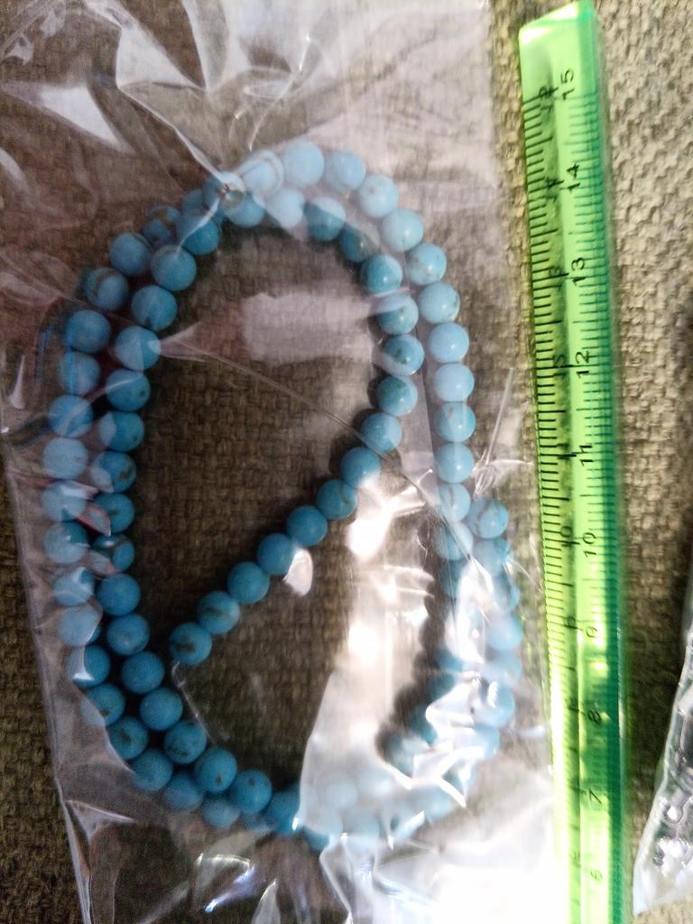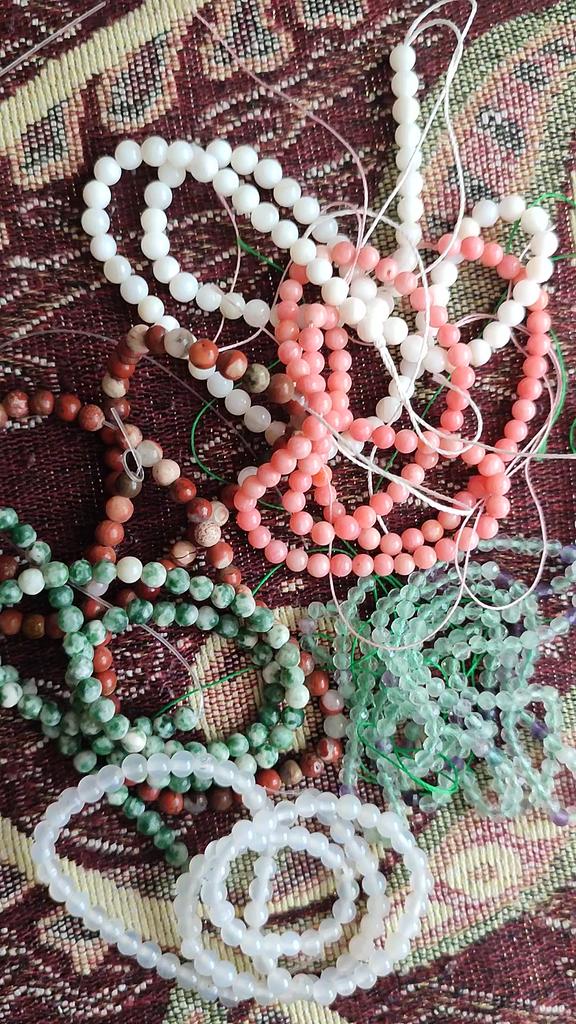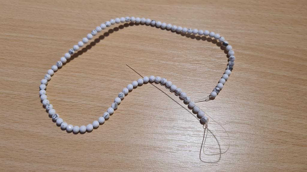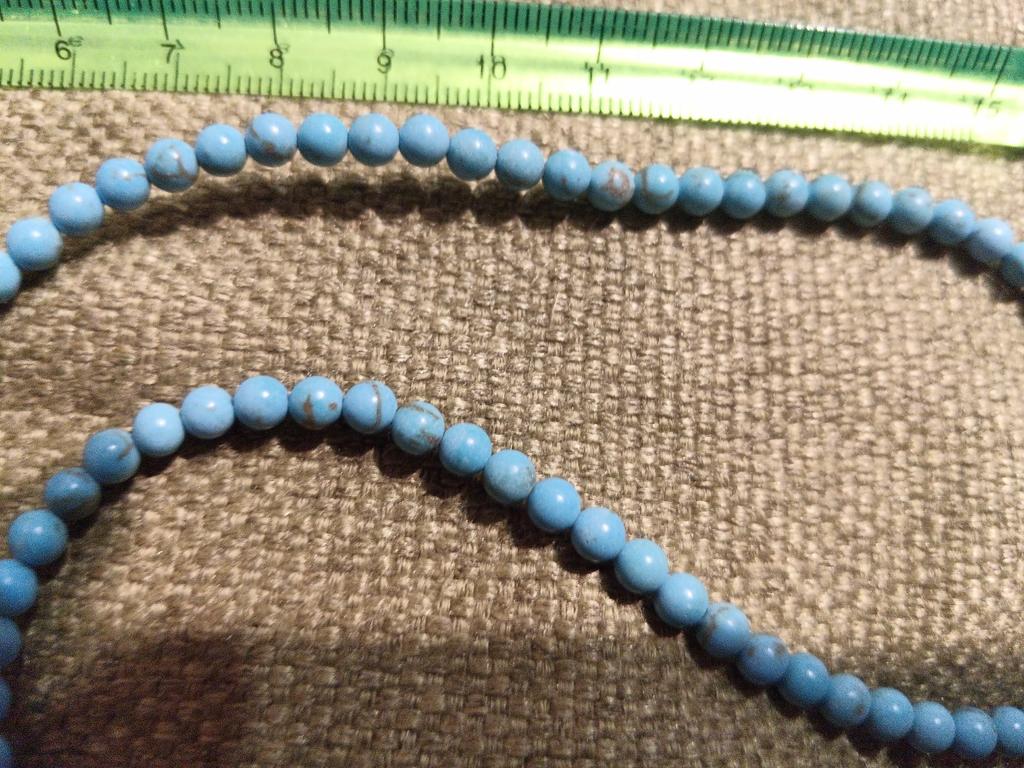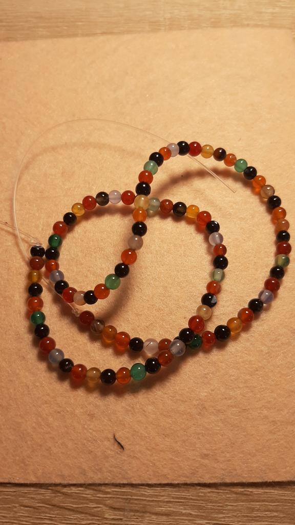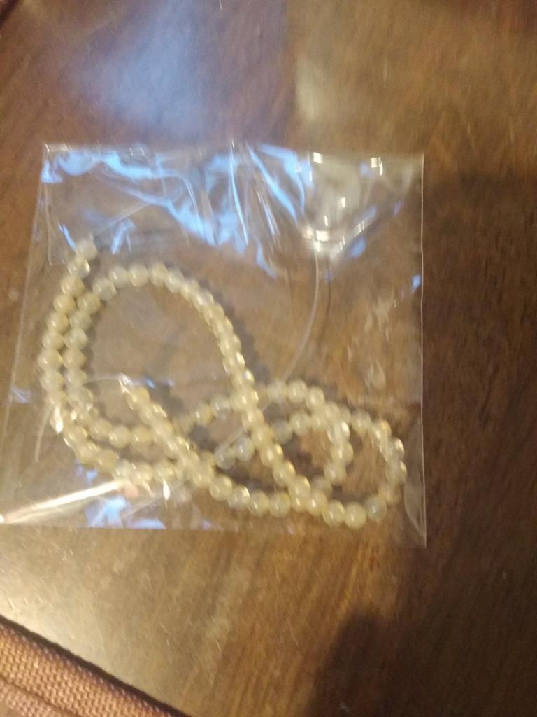 Poslali korálky 3 mm místo 4. Délka šňůrky je 38 cm.Většina korálků je šedá, průhledná a mléčná. nedoporučuji.