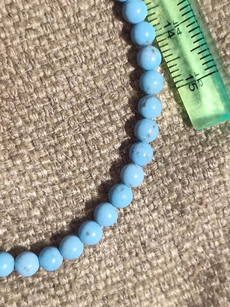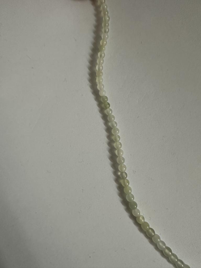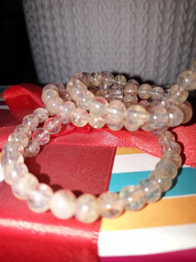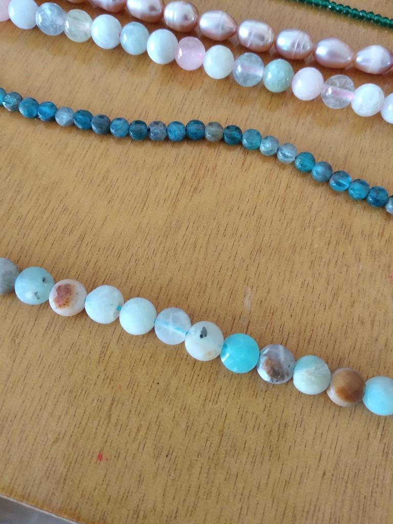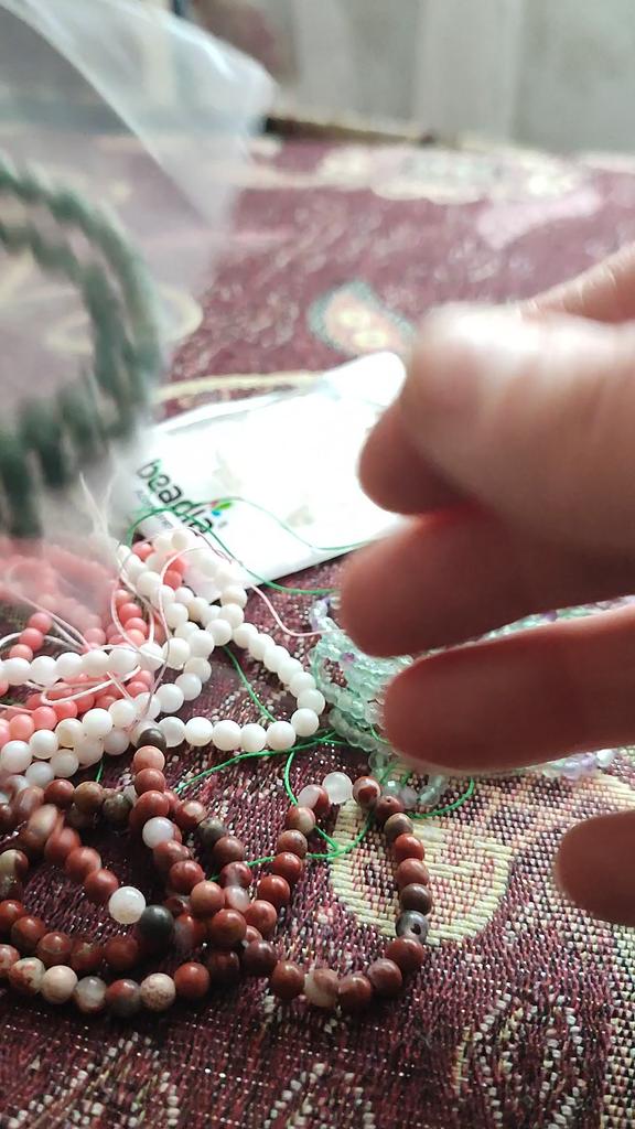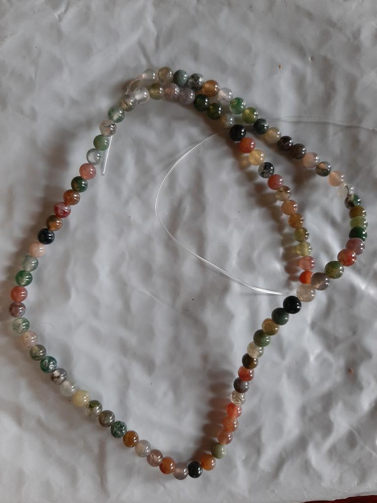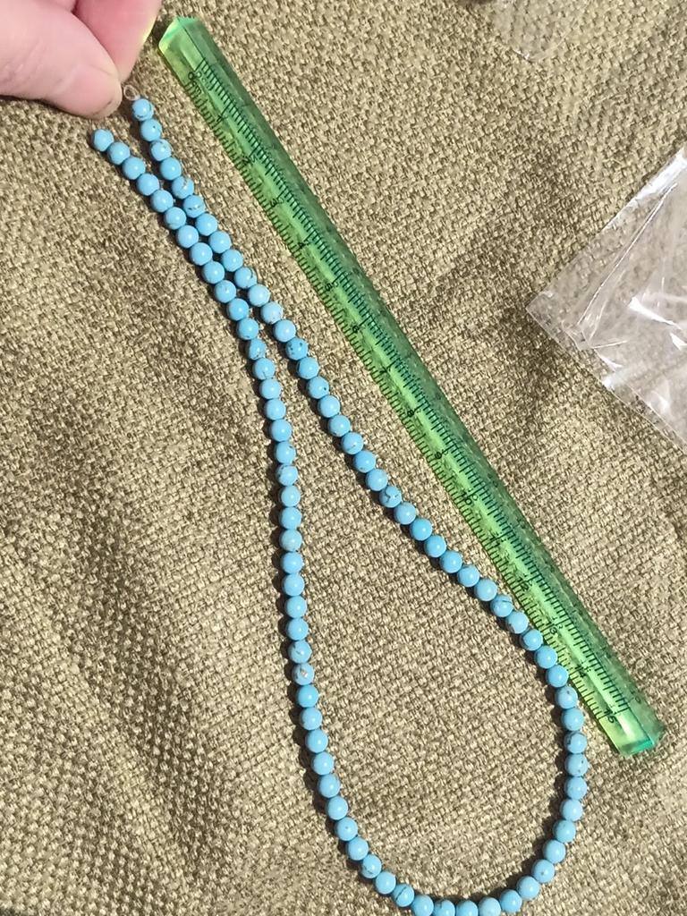 Poslali korálky 3 mm místo 4. Délka šňůrky je 38 cm.Většina korálků je šedá, průhledná a mléčná. nedoporučuji.