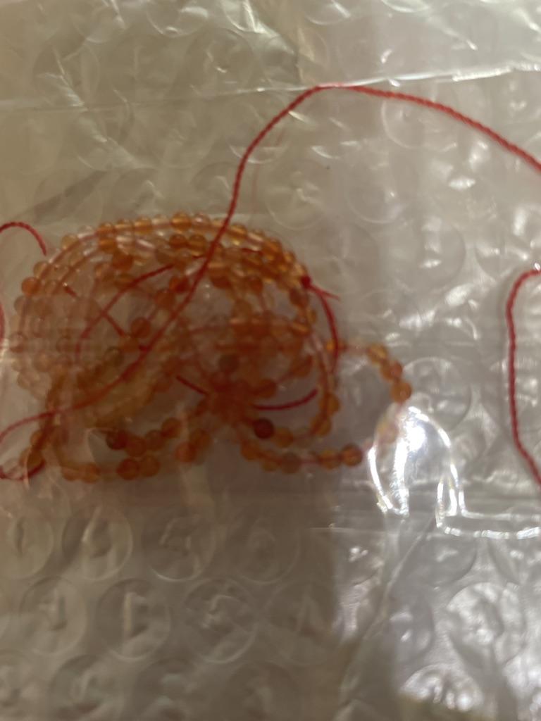 Jeden korálek je velmi malý. Korálky na vlasci, se dvěma uzly.