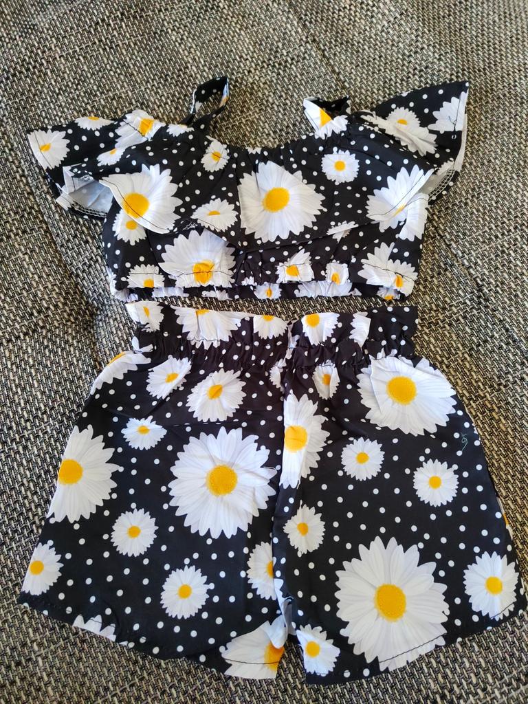 Letní batole děti Holčička Květinový volán Sling Crop Tops+Šortky Sada oblečení Kalhoty