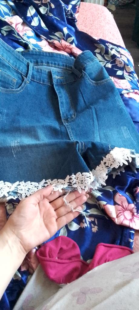 Moc se omlouvám, že jsem objednávala podle velikostní mřížky a ne podle recenzí, jelikož jsou šortky moc velké, je to hrubá velikost, 48 na 98 jsou mi velké, zašiju je. A vůbec, džíny jsou dobré, dobře se roztahují a jsou příjemné. Navíc přišli s rozbitou sponou. Vše je na fotce