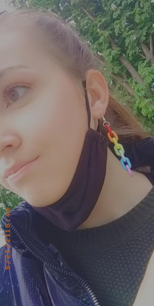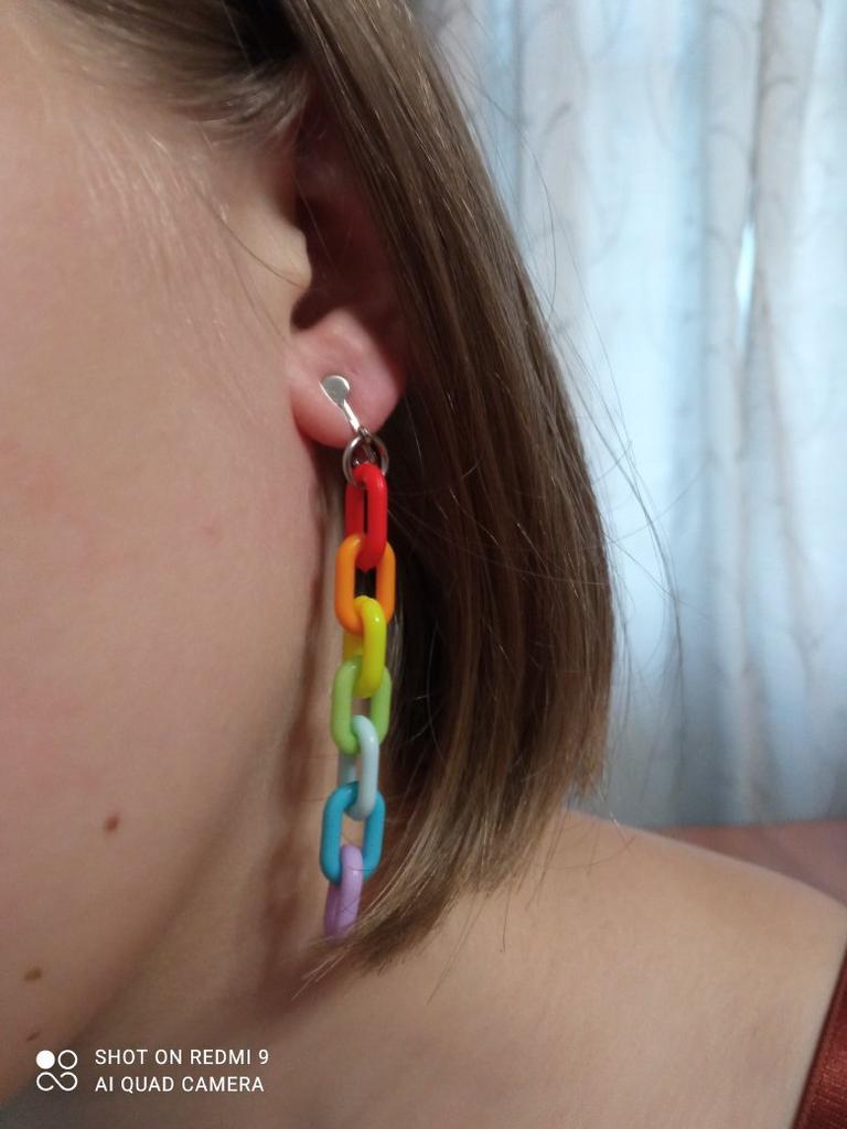 🇬🇧 Velmi spokojená s produktem!//🇩🇪 Sehr zufrieden mit der Ware!🔝 🇷🇺 ➡️ Doručení: Náušnice objednané za 2,52 €, dodání do Německa za 3,5 týdne, v sáčku + bublinková fólie neporušené, s ostatním zbožím ve společném balíčku od Joom👍 ➡️ Barva: Náušnice jsou barevné (barvy duhy), odpovídají fotce prodejce👌 ➡️ Velikost: Délka: 8,5 cm ➡️ Kvalita: Popis prodejce: Akrylové náušnice👌 Náušnice jsou vyrobeny velmi pečlivě, ve formě řetízku, kde každý článek sedmičky je jiné barvy duhy. Náušnice jsou i přes svou velikost lehké, prakticky vůbec bez váhy (netahají ušní lalůček)!👌 ✅ Pokračovat: Samozřejmě i v tomto případě: náušnice chuti a barvy👌 Ale jsem ráda, že si koupím tak jednoduché, ale zajímavé a neobvyklé náušnice👍 ✳️ Děkujeme prodejci a Joom🙏👍🌟 🇩🇪 ➡️ Doručení: Náušnice jsem objednala za 2,52 €, které byly doručeny do Německa za 3,5 týdne. Náušnice byly zabalené v malém igelitovém sáčku + bublinkové folii, s ostatním zbožím ve společném Joom sáčku a dorazily v pořádku ke mně👍 ➡️ Barva: Barevné náušnice (barvy duhy), odpovídají fotkám prodejce👌 ➡️ Velikost: Délka: 8,5 cm. ➡️ Kvalita: Podle prodejce jsou náušnice vyrobeny z akrylu👌 Jsou velmi kvalitně a precizně vyrobeny ve formě dlouhého řetězu, každý ze sedmi článků má jinou barvu duhy. I přes svou velikost - náušnice jsou velmi lehké, na uchu téměř necítíte žádnou váhu a nemáte žádné svěšené ušní boltce!👌️ ✅ Shrnutí: I zde je samozřejmě věcí vkusu, zda se vám tento typ náušnic líbí👌 Ale pro můj případ - s objednávkou jsem velmi spokojená, náušnice jsou velmi jednoduché, ale zajímavé a neobvyklé👍 ✳️ Děkujeme prodejci a Joom!🙏👍🌟