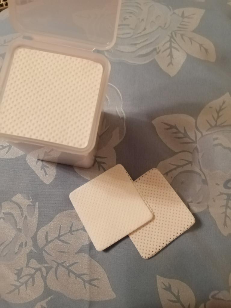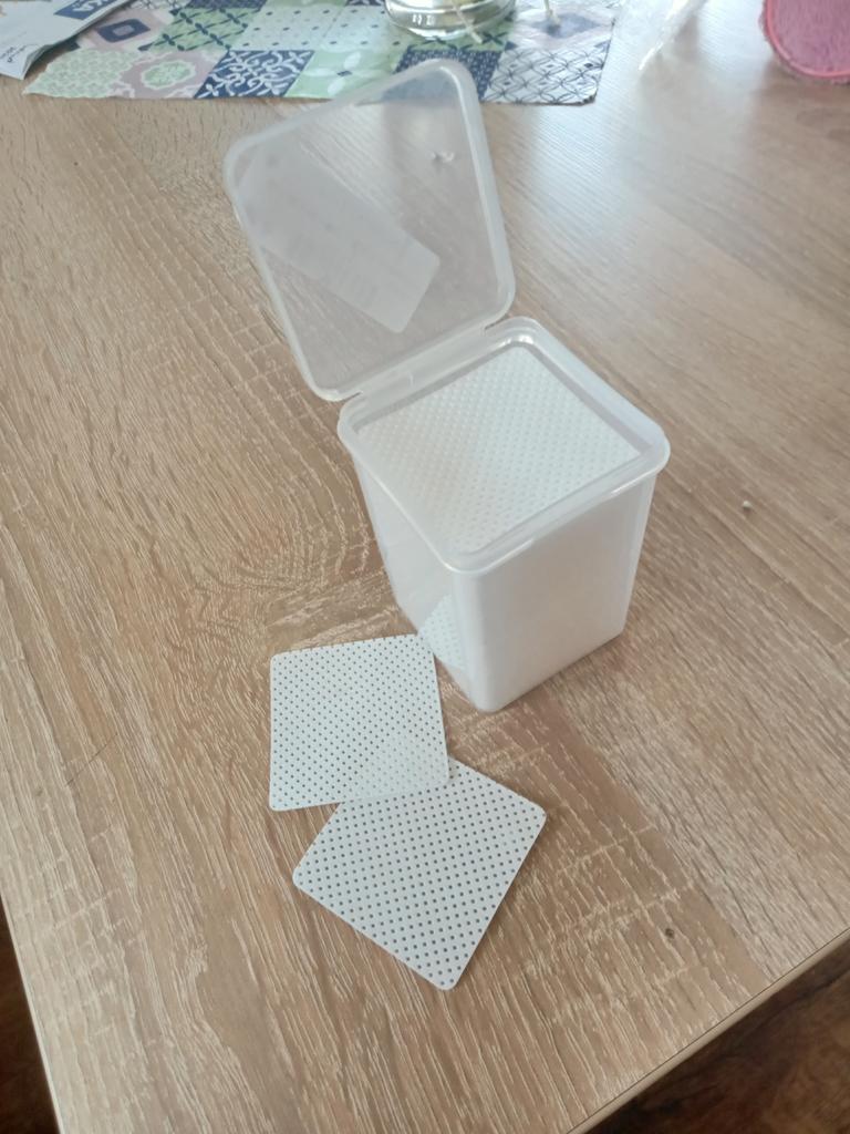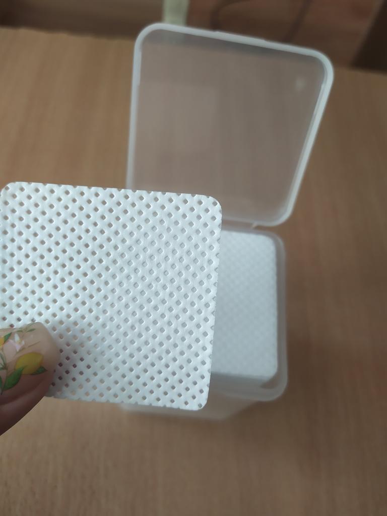 Bezvláknové ubrousky na odstraňování manikúry. Baleno v plastové nádobě, víko spolehlivě zacvakne. Množství -200ks(nepočítala jsem to 😉). Rozměry: 4,8 na 4,8 cm. Povrch ubrousku je velmi měkký, hladký, má rýhovanou strukturu (2. foto). Ubrousky jsou tenké, skvěle odstraňují 💅lak z nehtů. Spotřeba-úsporná(viz.video). Doporučuji k 🛍️.