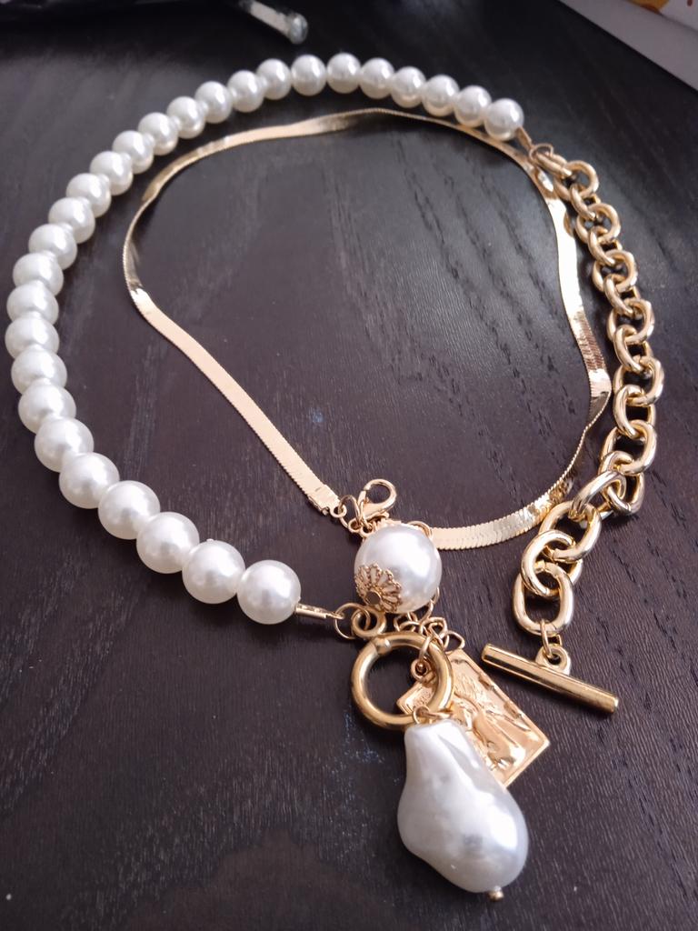 📿Náhrdelník ze 2 řetízků 📿Kvalita je dobrá, odpovídá propagační fotografii 📿Délka perlového řetízku je 50cm a zlatého 45cm 📿 Jasně jsem to ukázal ve videu 📿Doporučuji milovníkům módních šperků!