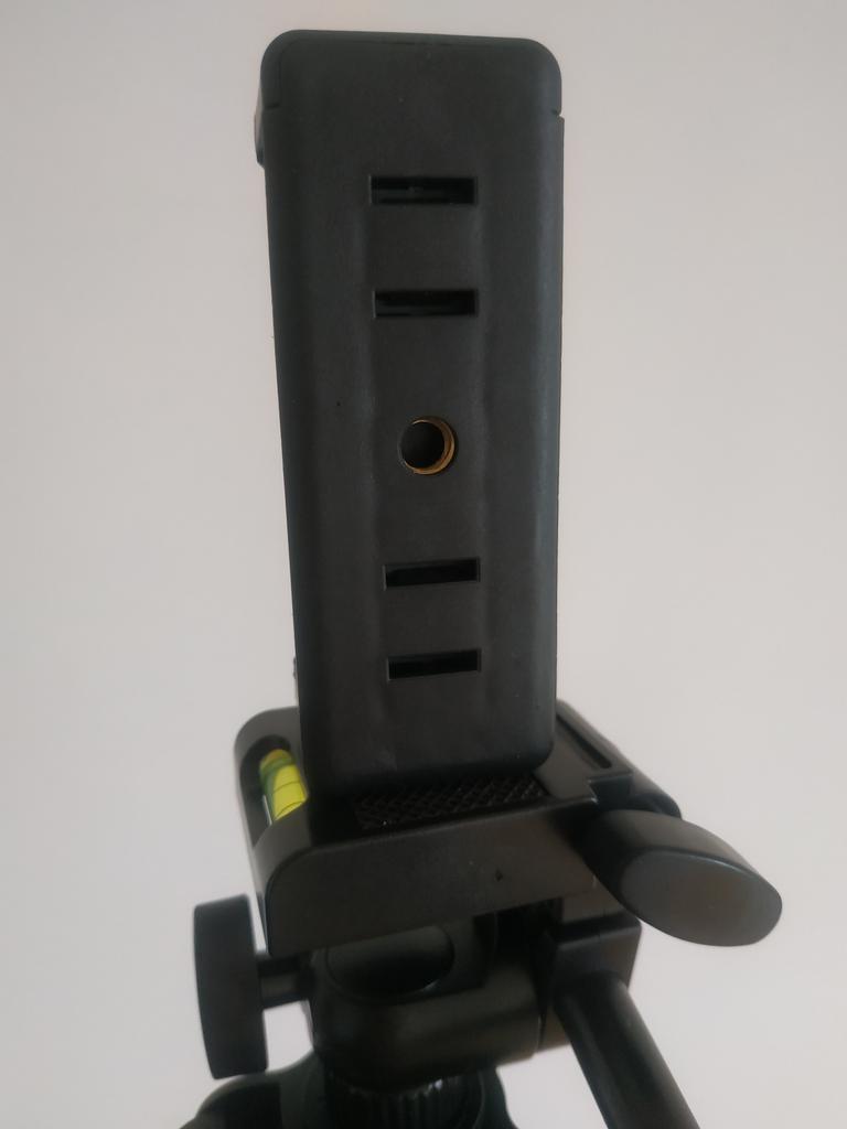Stativ je docela pohodlný. Držák telefonu lze připevnit jako já nebo středem držáku – díky tomu je fotografování pohodlnější.