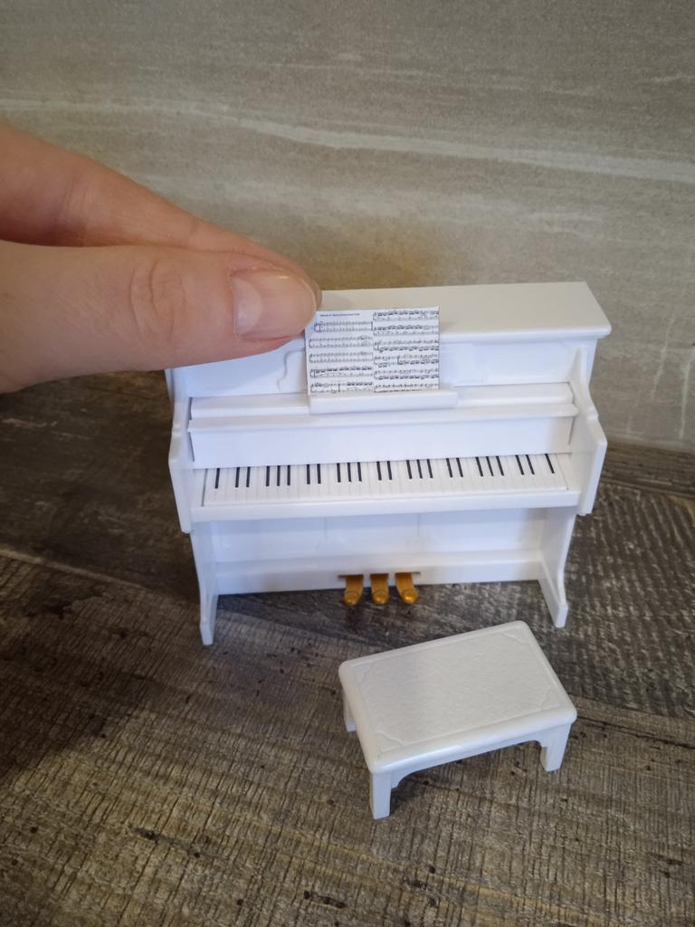 Pěkný malý klavír. Pedály a klávesy se pohybují. Poznámky nebyly vloženy. Je to škoda.