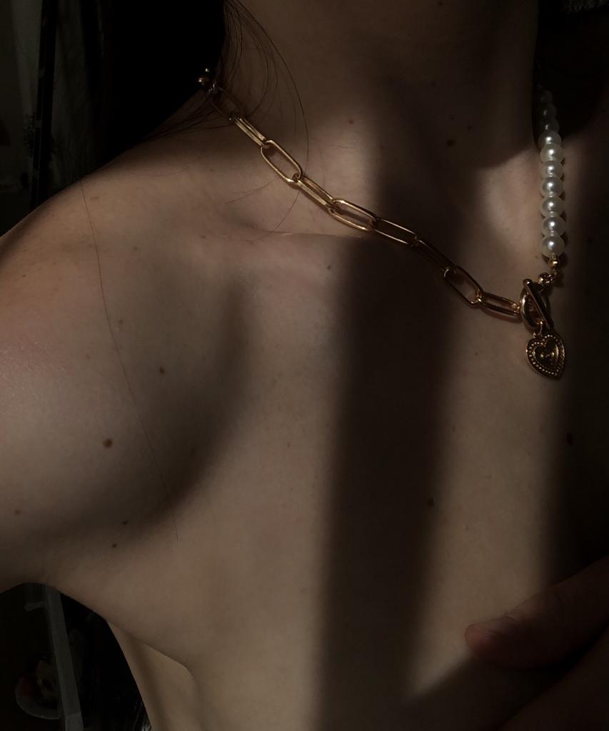 Módní nádherné bílé perleťové srdce Flitrový přívěsek s kovovým řetízkem Náhrdelník Dámský šperk