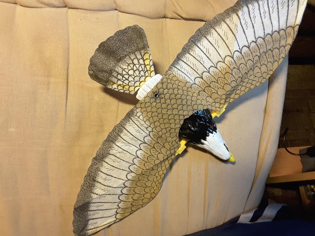 Rychlé dodání, hlasité pištění by mělo holuby odplašit, tak uvidíme.