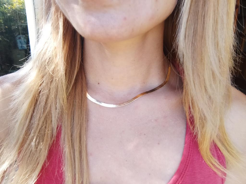 Můžete ji nosit maximálně dvakrát, protože materiál okamžitě zmatní a zanechá na krku nepříjemné fleky