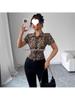 Ženy Léto s krátkým rukávem leopardí halenka Košile Vintage zvířecí potisk Dámské krátké topy Ležérní Street Lady Volné košile