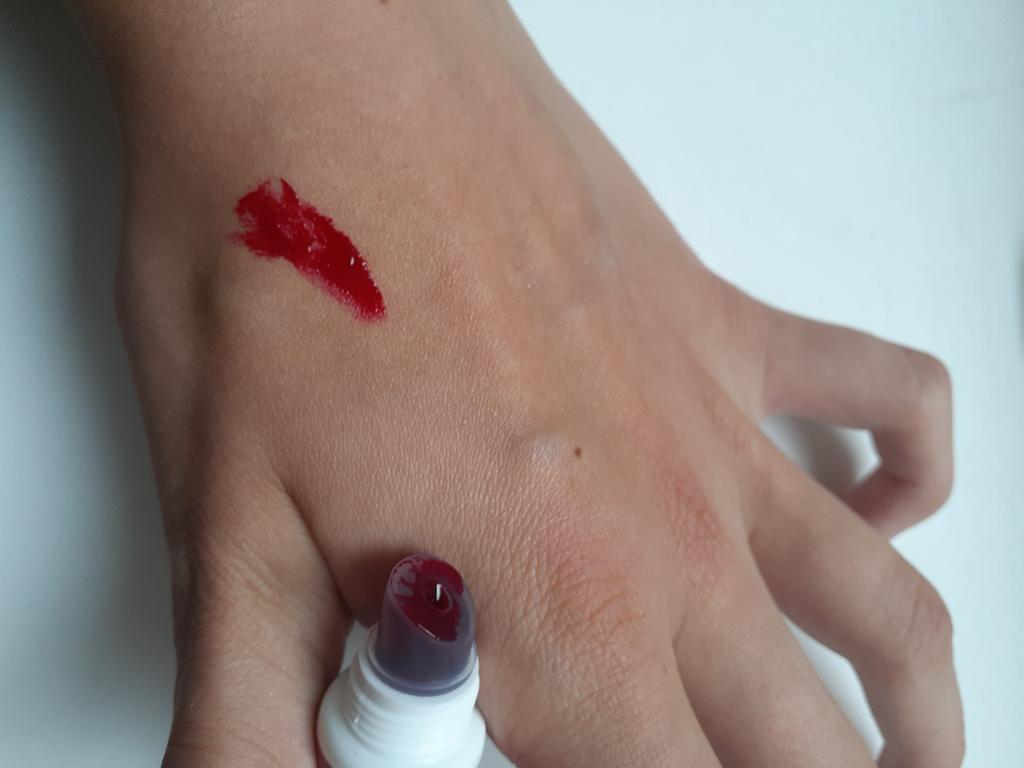 Barva je opravdu červená červená a nevydrží mi na rtech celý den. Rychle však zasychá a můžete ji bezbolestně odstranit.
