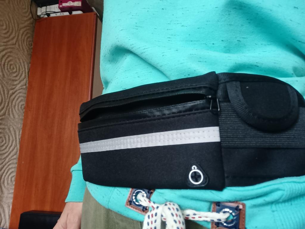 Dobrá ledvinka, telefon se vešel a malá lahvička také. Kapsička na sluchátka je malá, nezavírá se. Ale Dítěti se líbí. V pase je nastavitelná.