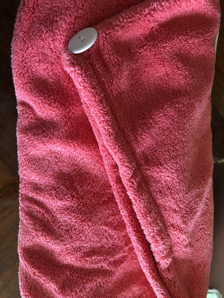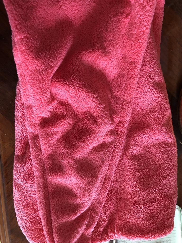 Tento druhý turban jsem si objednala k následujícímu froté županu. Dlouhé, měkké. Vymknutí.