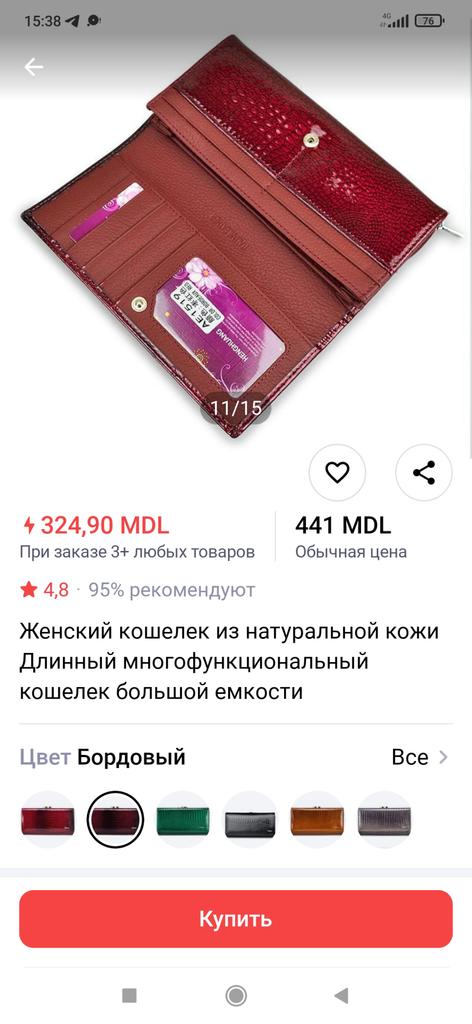 Děkuji za peněženku, je velmi pohodlná, vizitky jsou vhodné pro obchodníky, lze vložit i železné peníze, jsou vhodné i na UAH a dolary.Jsem velmi spokojená a prodejce doporučuji
