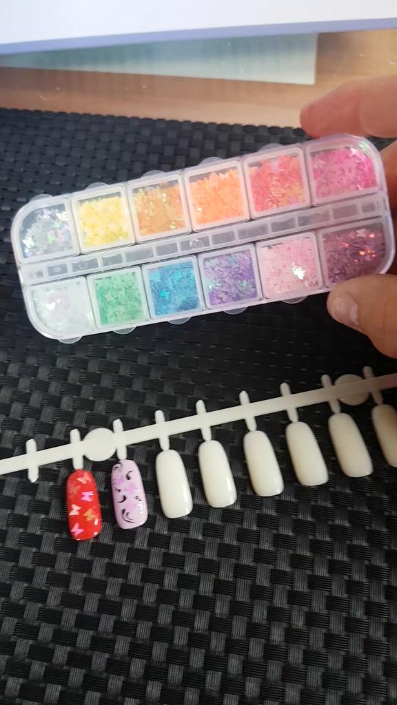 Jsem nadšená, na nehtech budou určitě vypadat pěkně. Dnes jsem udělal vzorek nehtu, třpytí se jako hvězdy na slunci