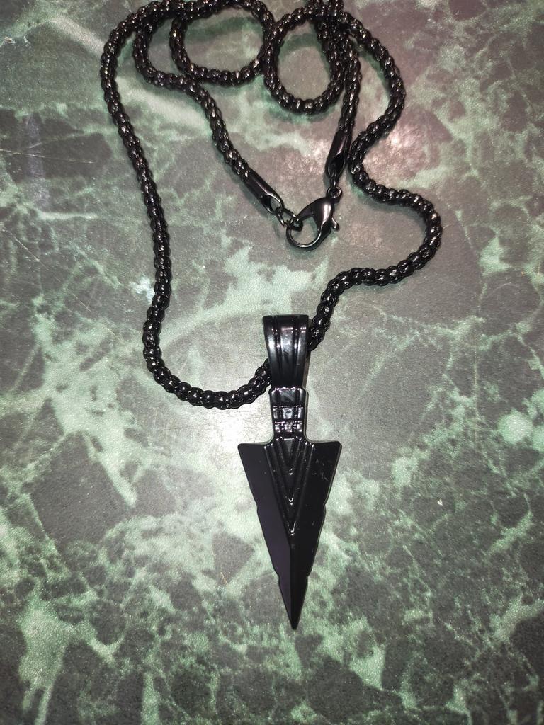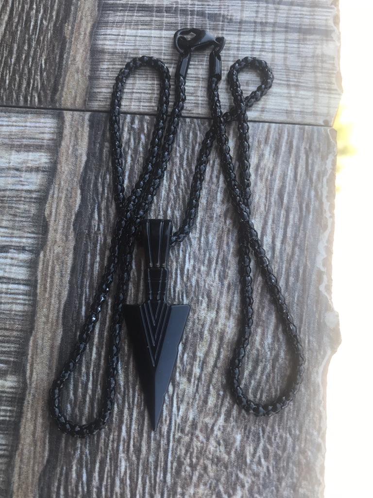 Pánský designový matný černý dlouhý náhrdelník s přívěskem šipky šperkový řetízek Hip Hop Punk Rock Vánoční Halloweenský dárek