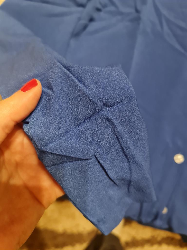 Velmi kvalitní košile. Materiál je poměrně hustý, neprůhledný a příjemný na dotek - strukturou připomíná šifon, ale nejsem si 100% jistý. Barva je velmi intenzivní - zcela odlišná od odstínu prezentovaného v nabídce. Podle mě je to určitě plus, ale co preferujete 😊 Velikost odpovídá rozměrům uvedeným v Tabulce velikostí. Doporučuji!