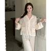 Ledová hedvábná krajka Sladké pyžamo Dámské letní Dlouhý rukáv Tenký Hedvábný módní dvoudílný oblek