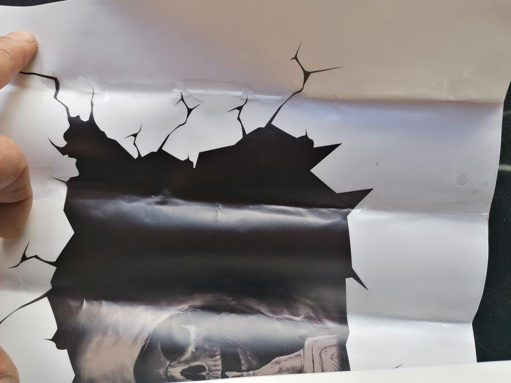 Takto složené dohromady vznikne nálepka, která je navíc ještě zmačkaná.