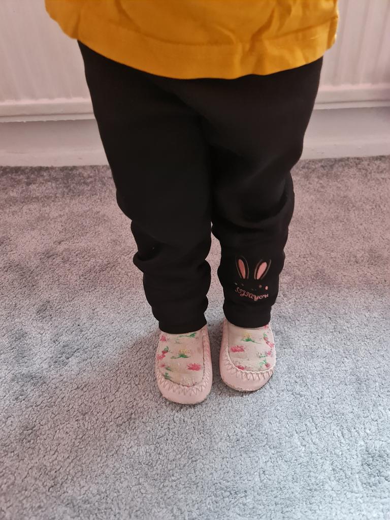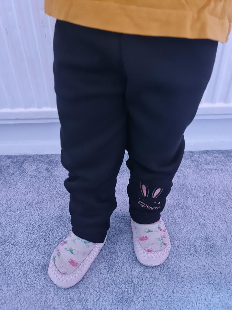 Velmi krásné legíny pro malé holčičky s jejich roztomilým králíčkem na spodní části nohy. Ideální na zimu díky fleecové podšívke. Velikost perfektně. Trochu dlouhé dodání. Děkuji prodejci.