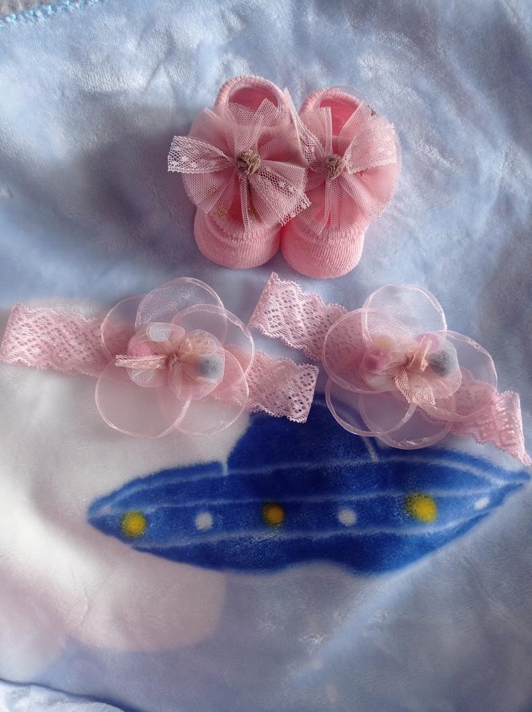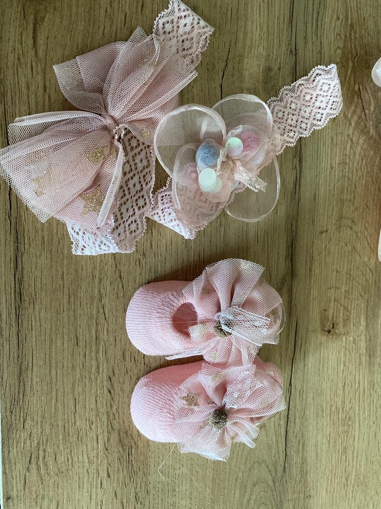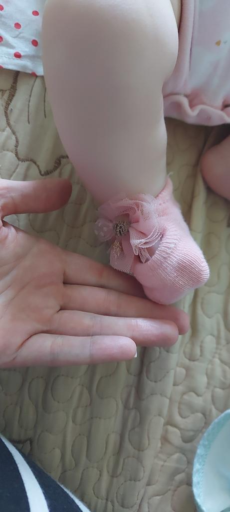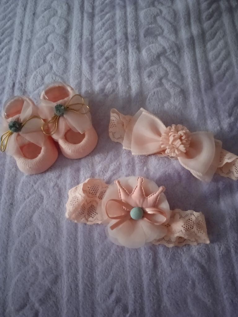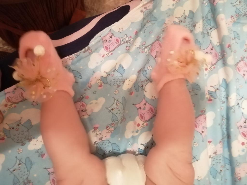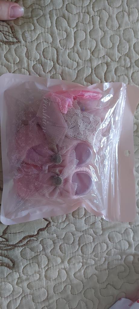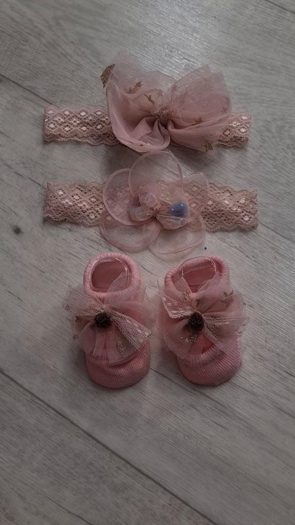 Zboží dorazilo ve dvou balících, nepoškozené. Sada plně odpovídá fotografii. Velikost je asi dva až tři měsíce. Malému je 1,5 měsíce, takže převazy jsou trochu velké, ale není to nic hrozného. Češi jsou na jejích nohách tak akorát, ale do měsíce, myslím, půjde i utáhnout. S výrobkem jsem naprosto spokojen. Všechny mašle perfektně drží, nejsou ošoupané, stuhy jsou celé, bez švu, dobře se natahují a zároveň jsou měkké, aby netlačily na hlavičku.
