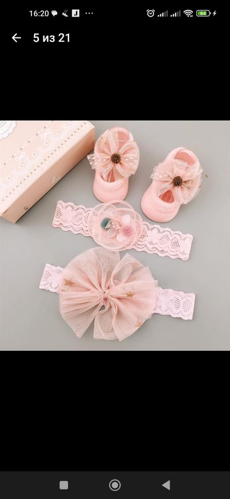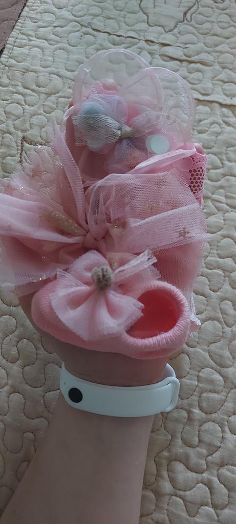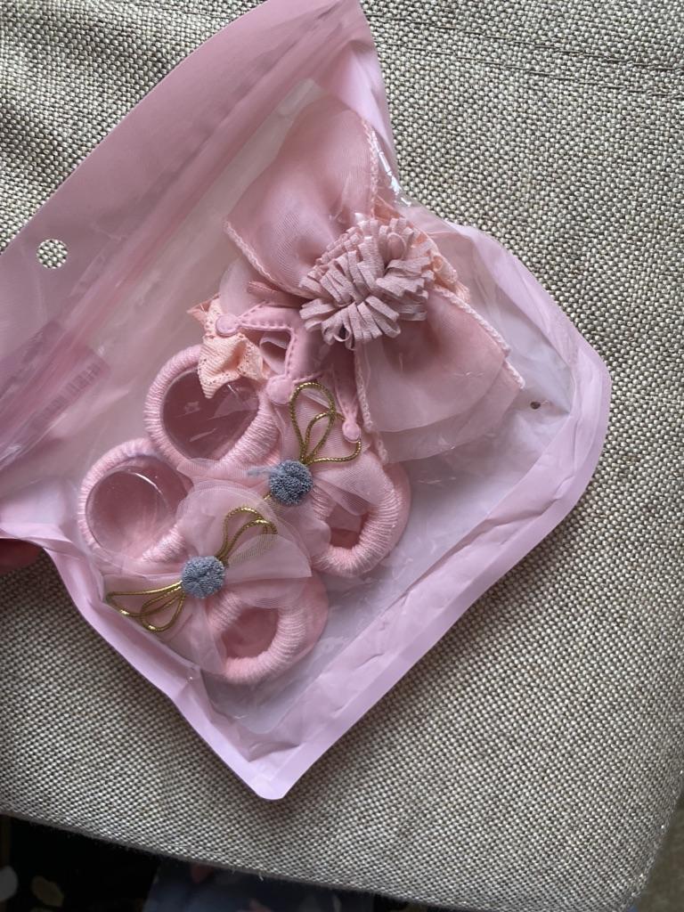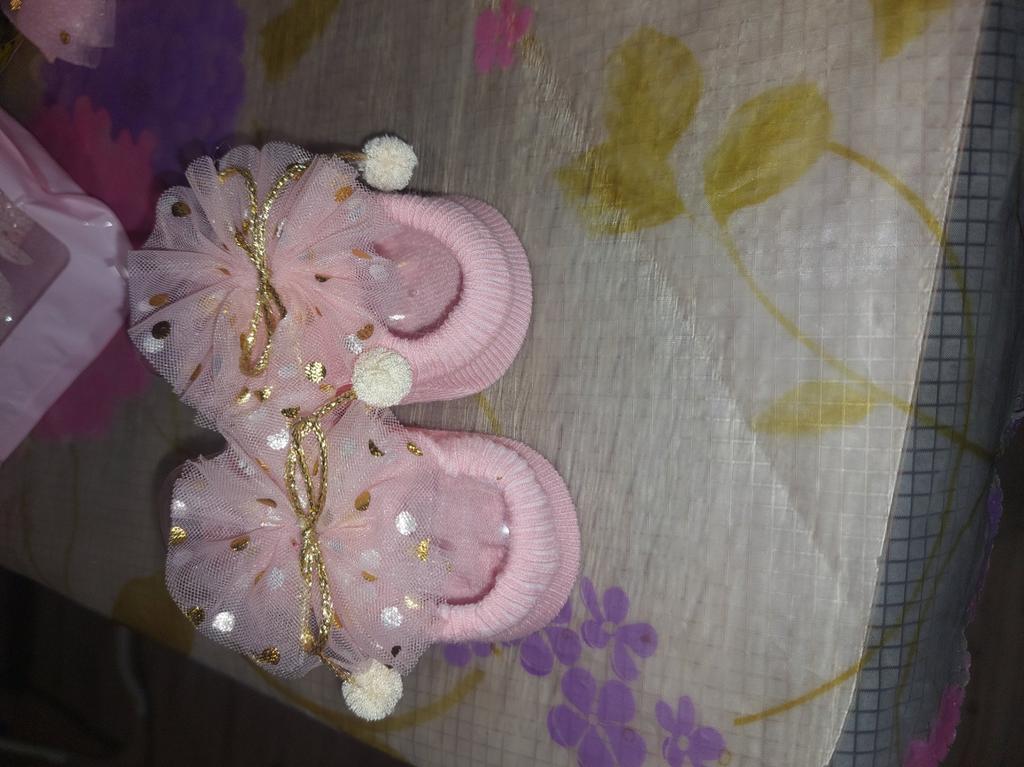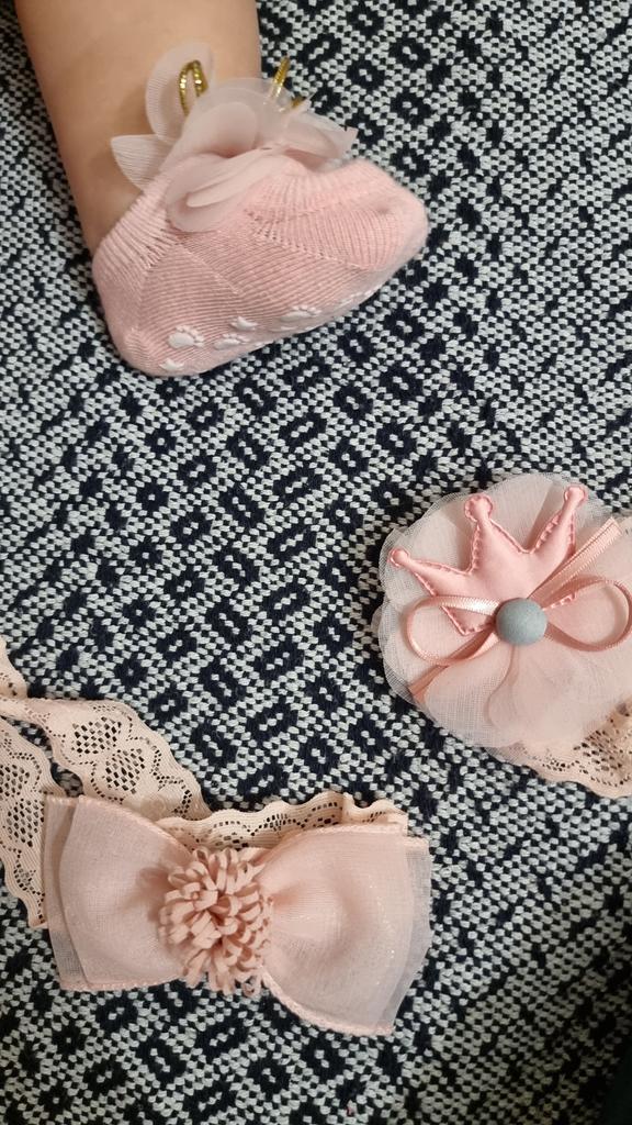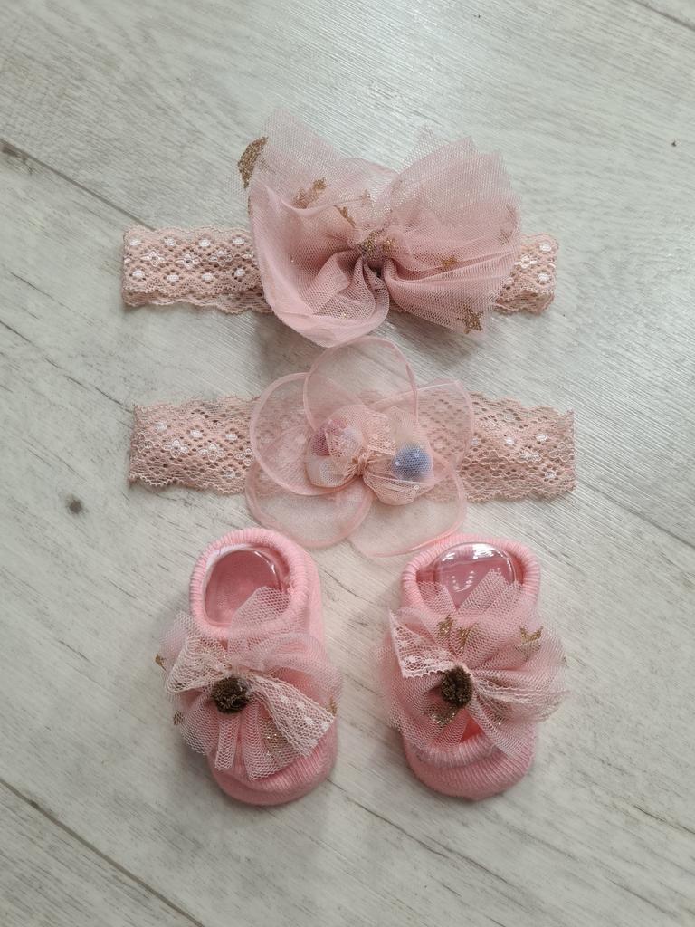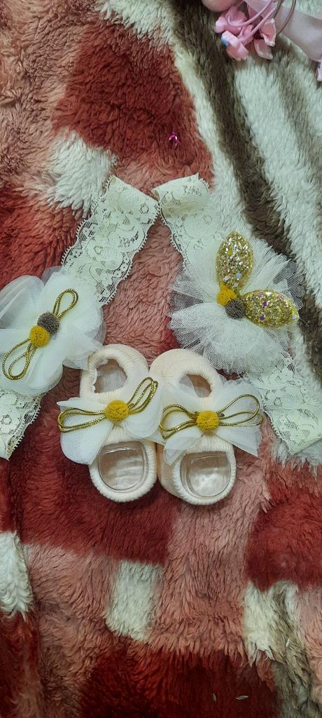 Zboží dorazilo ve dvou balících, nepoškozené. Sada plně odpovídá fotografii. Velikost je asi dva až tři měsíce. Malému je 1,5 měsíce, takže převazy jsou trochu velké, ale není to nic hrozného. Češi jsou na jejích nohách tak akorát, ale do měsíce, myslím, půjde i utáhnout. S výrobkem jsem naprosto spokojen. Všechny mašle perfektně drží, nejsou ošoupané, stuhy jsou celé, bez švu, dobře se natahují a zároveň jsou měkké, aby netlačily na hlavičku.