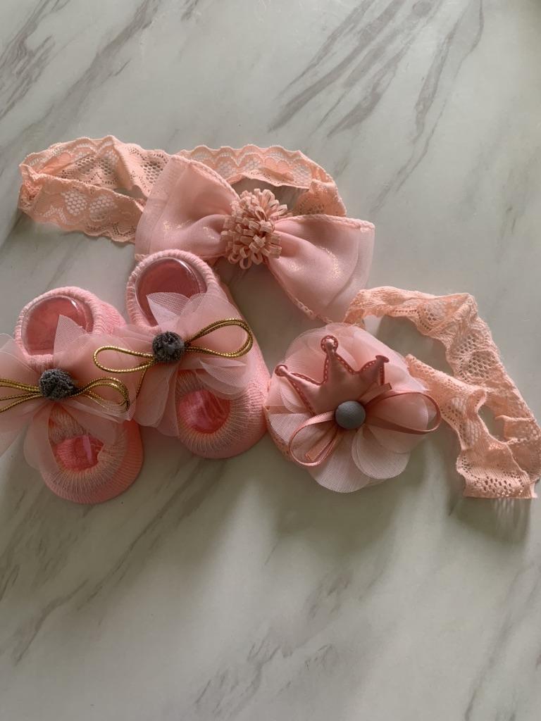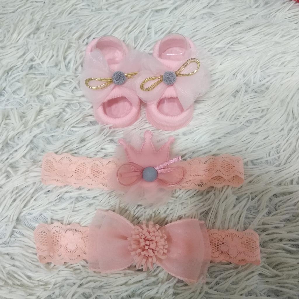 3ks/sada Krajka Květina Holčička Čelenka Ponožky Sada Crown Mašle Čelenky pro novorozence Čelenky pro dívky Turban Dětské vlasové doplňky